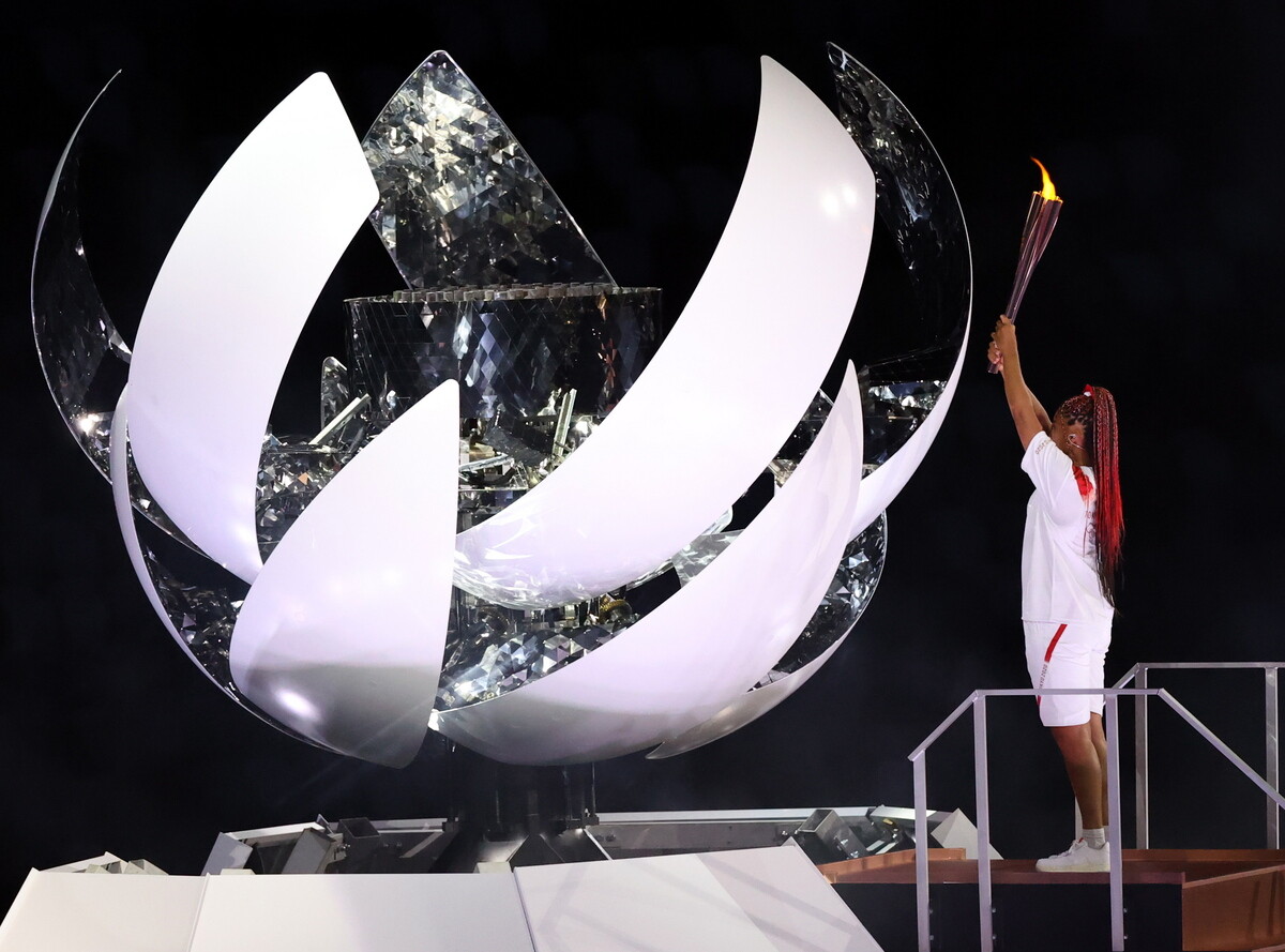 Η Γιαπωνέζα σταρ του τένις Ναόμι Οσάκα έγινε η τελευταία λαμπαδηδρόμος και μετέφερε την Ολυμπιακή φλόγα στον βωμό του σταδίου, σηματοδοτώντας την επίσημη έναρξη των Ολυμπιακών Αγώνων του Τόκιο 2020.