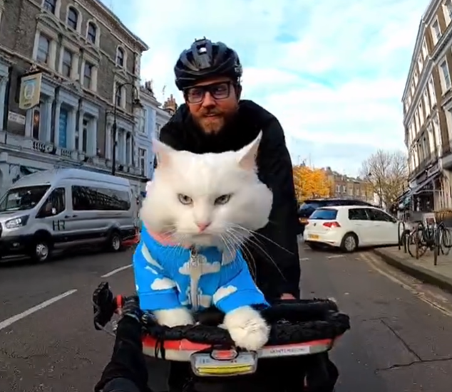 Μια γάτα που έχει γίνει viral στο ίντερνετ, επειδή μεταφέρεται στους δρόμους του Λονδίνου μέσα σε ένα καλάθι ποδηλάτου, ενεπλάκη σε τροχαίο ατύχημα.
