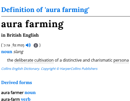 Άλλοι όροι που ξεχώρισαν φέτος ήταν το «glaze», που σημαίνει «να επαινείς ή να κολακεύεις υπερβολικά κάποιον», και το «aura farming», δηλαδή την «εσκεμμένη καλλιέργεια μιας χαρισματικής ή ιδιαίτερης δημόσιας εικόνας».