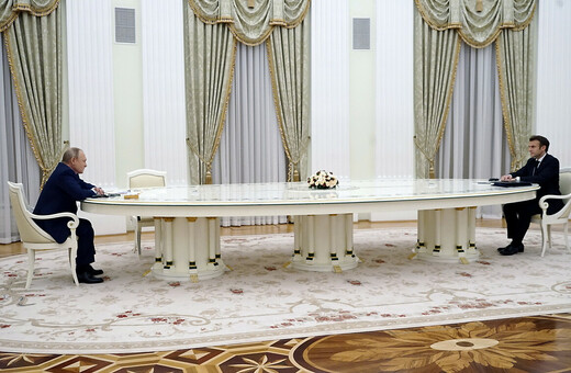 Ο Ρώσος, ηγέτης, μετά το λευκό, τεράστιο τραπέζι όπου είχε υποδεχθεί τον Όλαφ Σολτς και τον Εμανουέλ Μακρόν, βρέθηκε σε ένα ακόμα μεγαλύτερο κατά τη διάρκεια της Συνόδου Κορυφής ηγετών στην Κασπία.