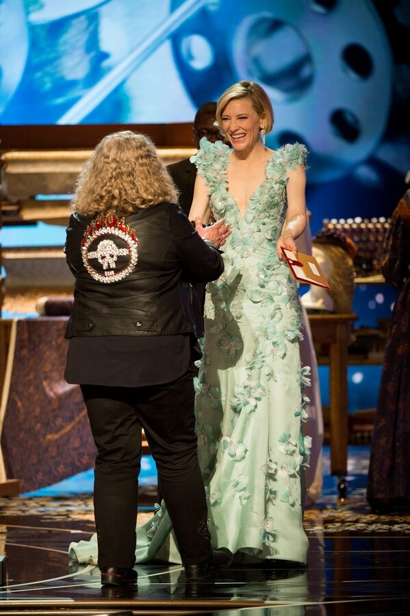 Για την ιστορία, η Beavan είναι η γυναίκα που είναι υπεύθυνη για τα εντυπωσιακά κοστούμια του Mad Max και στο βιογραφικό της έχει ακόμη ένα Όσκαρ. Αλλά παραβίασε τους κανόνες και έκανε κάτι που οι υπόλοιποι σταρ δεν έδειξαν να εκτιμούν. Αιτία για τα βλοσυρά βλέμματα είναι τα ρούχα της και όπως όλα δείχνουν το δερμάτινο biker τζάκετ της που ξεχώριζε ανάμεσα στις εκθαμβωτικές τουαλέτες και τα σμόκιν των υπολοίπων.
