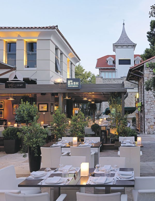 , ένας all day χώρος. Το περιβάλλον είναι κομψό και σε στρατηγικό σημείο, γι' αυτό και το τιμούν παρέες όλων των ηλικιών για καφέ, γλυκό, light lunch, dinner ή ακόμα και για ένα ποτήρι κρασί μετά το γραφείο. Βράδυ καθημερινής με ψιλόβροχο βρέθηκα εκεί. Κλασικά πιάτα, εμπνευσμένα από τη μεσογειακή κουζίνα, ενώ ορισμένα έχουν ένα μοδάτο άγγιγμα, όπως το καλοφτιαγμένο και γευστικό ταρτάρ σολομού με σαλάτα καλαμπόκι, που του χάριζε τη διακριτική γλύκα του (€16,5). Από τα πρώτα πιάτα, ενδιαφέρον είχε και το χταπόδι καρπάτσιο που συνοδεύεται με ταραμά και ρόκα (€16,5). Ωραία δουλεμένη και με πλούσια γεύση ήταν η ανάμεικτη πράσινη σαλάτα με κατσικίσιο τυρί, καραμελωμένα σύκα, καρύδια και σος λιαστής ντομάτας (€13). Από τα κυρίως, δοκίμασα το πολυπαιγμένο πλέον κριθαρότο με γαρίδες (€18,50), στο οποίο θα ήθελα ο σεφ Γιώργος Κώστας, που έχει θητεύσει στο πλευρό της Αργυρώς Μπαρμπαρίγου, να κάνει τη διαφορά. Βρήκα γευστικό και ζουμερό το κεμπάπ σχάρας με πίτες, ντομάτα και σος γιαουρτιού (€17,5), ενώ για πιο light επιλογές ο σεφ προτείνει το μπιφτέκι γαλοπούλας, που στην καρδιά του είναι καρφωμένο το lemongrass και συνοδεύεται από πατάτες τηγανητές (€18,50 ). Για το τέλος, η χειροποίητη μπουγάτσα βγαίνει από τον φούρνο κι έρχεται καυτή στο τραπέζι. Πλούσια και άγλυκη η κρέμα της, ευωδιάζει κανέλα. Το New Dash έχει γίνει στέκι. Φιλόξενο και ευγενικό σέρβις, αλλά οι τιμές ακολουθούν το πνεύμα της Κηφισιάς. ☛ New Dash, Κολοκοτρώνη 8, Κηφισιά, Εμπορικό Κέντρο Αίγλη, 210 8088796.