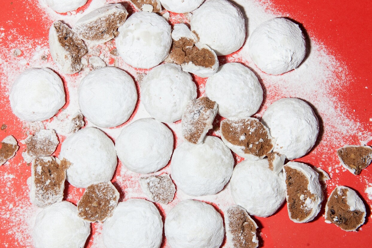 - Πλάθουμε τη ζύμη σε μικρές μπάλες τον 15-20 γρ. και τις βάζουμε σε ταψί με αντικολλητικό χαρτί.