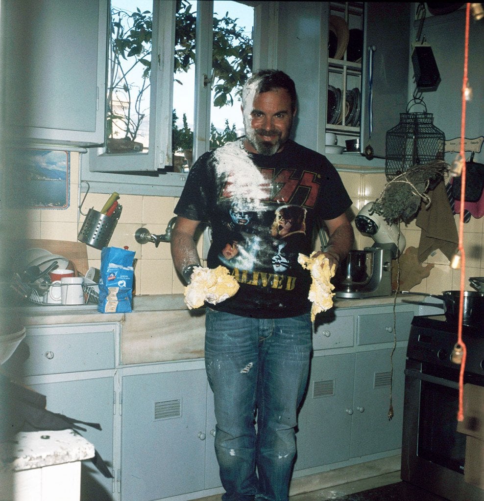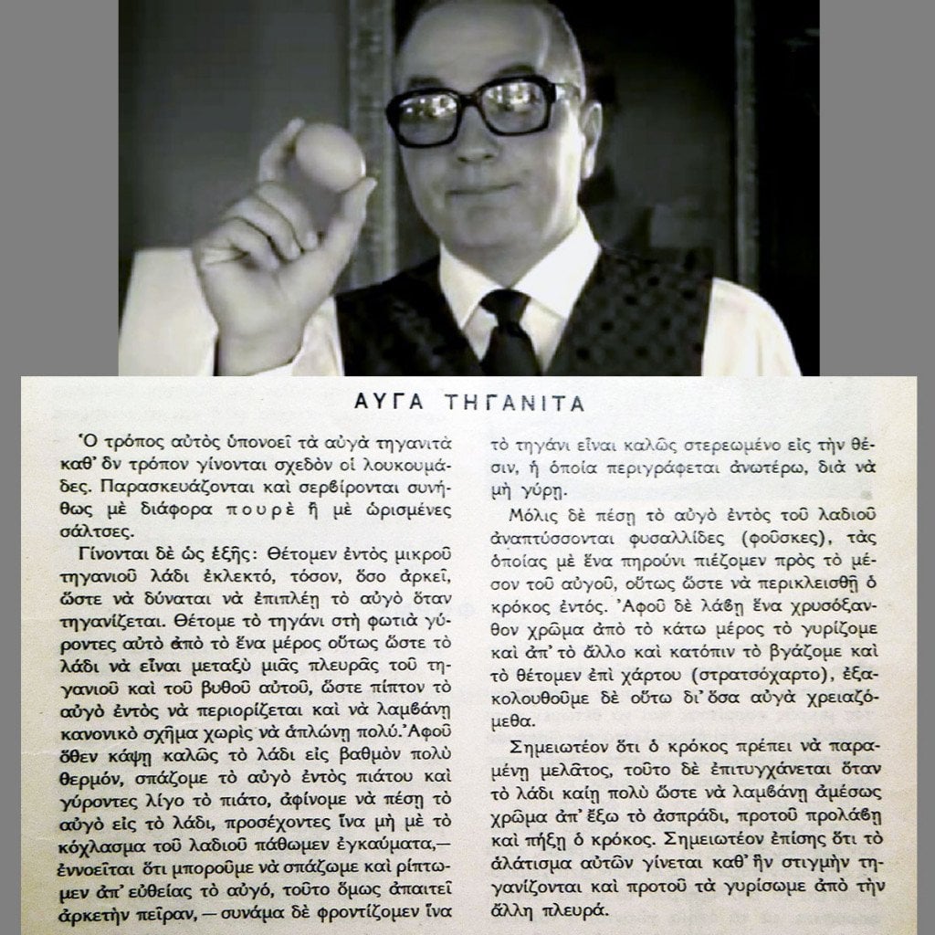 Ο Νίκος Φωκάς-Τσελεμεντές φτιάχνει αυγά τηγανητά. Βλ. Madame Ginger και mariloupan.