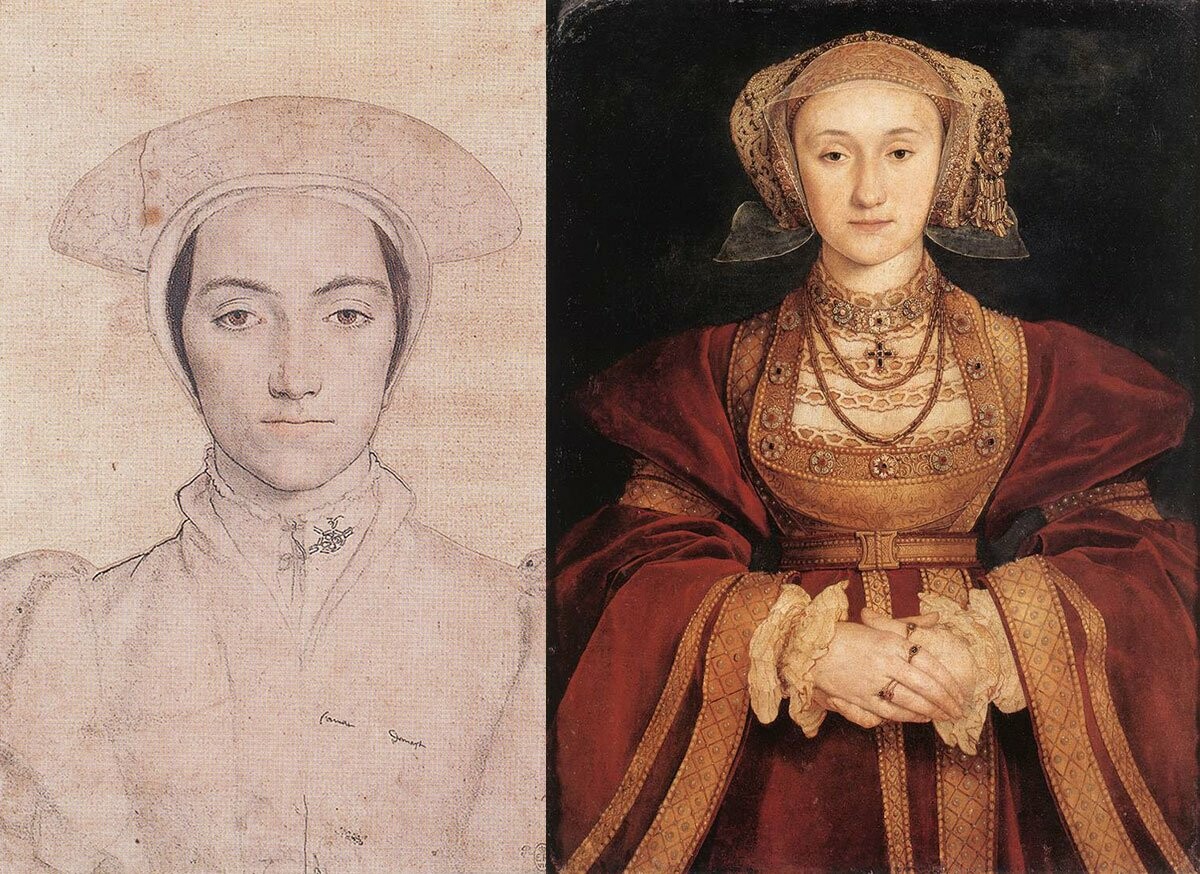 Οι αδερφές Amalia von Kleve (αριστ.) και Anna von Kleve σε δύο προσωπογραφίες του Χανς Χόλμπαϊν του Νεότερου. Σε μία από της δύο -όποια θα διάλεγε ο βασιλιάς Ερρίκος Η΄ της Αγγλίας- επρόκειτο να πέσει ο κλήρος του βασιλικού γάμου. Bλ. Wikimedia Commons.