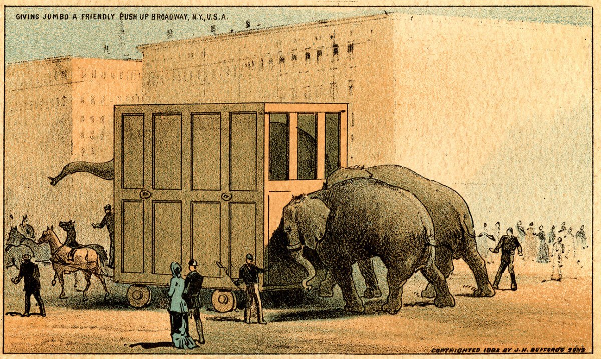 "'Ενα φιλικό χεράκι για να φτάσει ο Jumbo μέχρι το Broadway". Phineas Taylor Barnum papers, 1818-1993. Βλ. Tufts Digital Library.