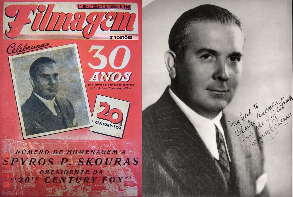 Ο Σπύρος Σκούρας στο γραφείο του στην 20th Century Fox, μία από τις Big Five Majors του Χόλυγουντ, της οποίας διετελέσε πρόεδρος από το 1942 ως το 1962. Βλ. tsutpen.blogspot.com, neoskosmos.com και myroniailias.blogspot.com.