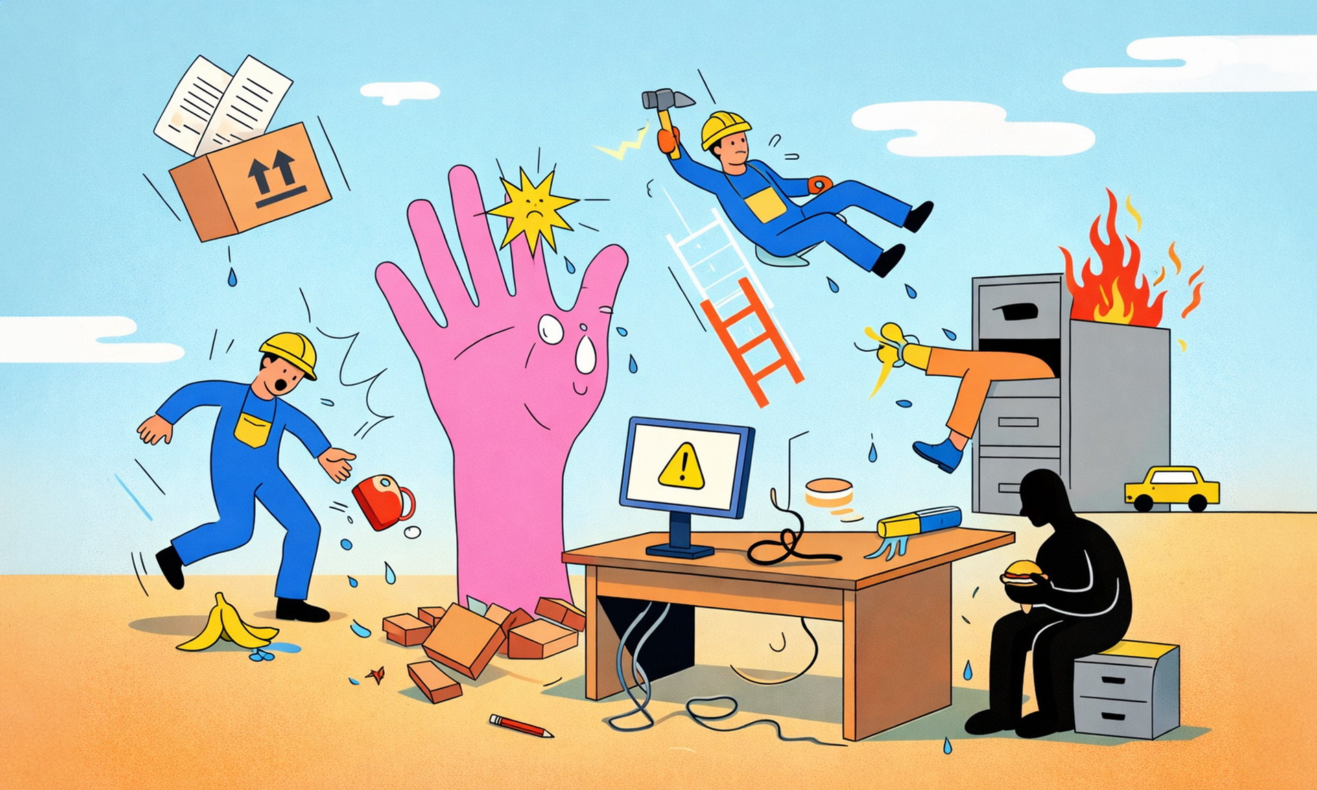 Το υπόλοιπο καταγράφεται σε διάσπαρτες ειδικότητες, μεταξύ των οποίων συγκαταλέγονται εργαζόμενοι σε γραφεία, σούπερ μάρκετ, υπηρεσίες καθαριότητας, υγειονομική περίθαλψη, και σεκιούριτι, σκιαγραφώντας μια ευρεία γκάμα επαγγελμάτων, τα οποία συχνά μένουν εκτός του δημόσιου διαλόγου για την υγεία και ασφάλεια στην εργασία.