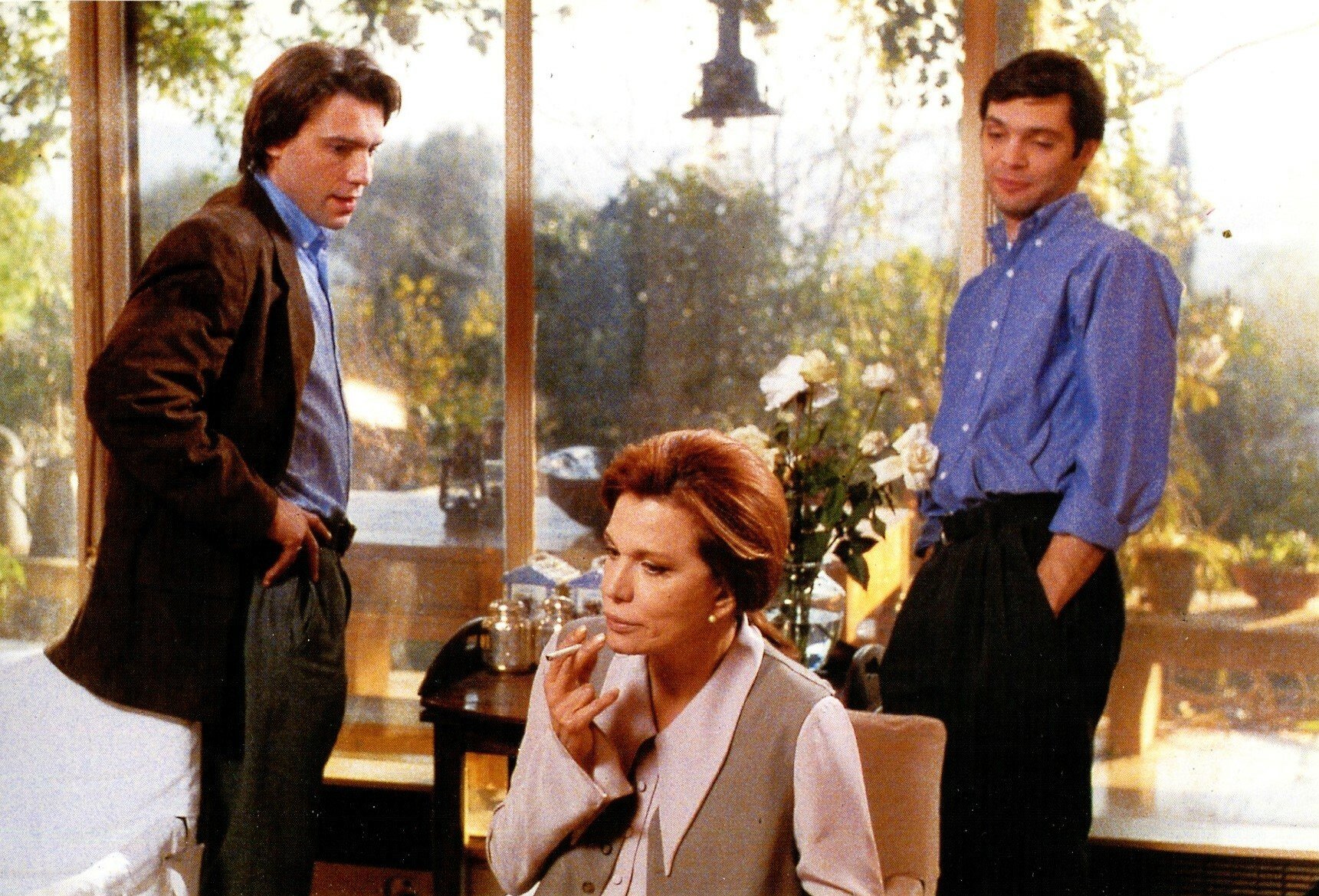 Η Μαίρη Χρονοπούλου με τον Στράτο Τζώρτζογλου και τον Άλκη Κούρκουλο στην ταινία «Προς την ελευθερία» του Χάρη Παπαδόπουλου, 1996.