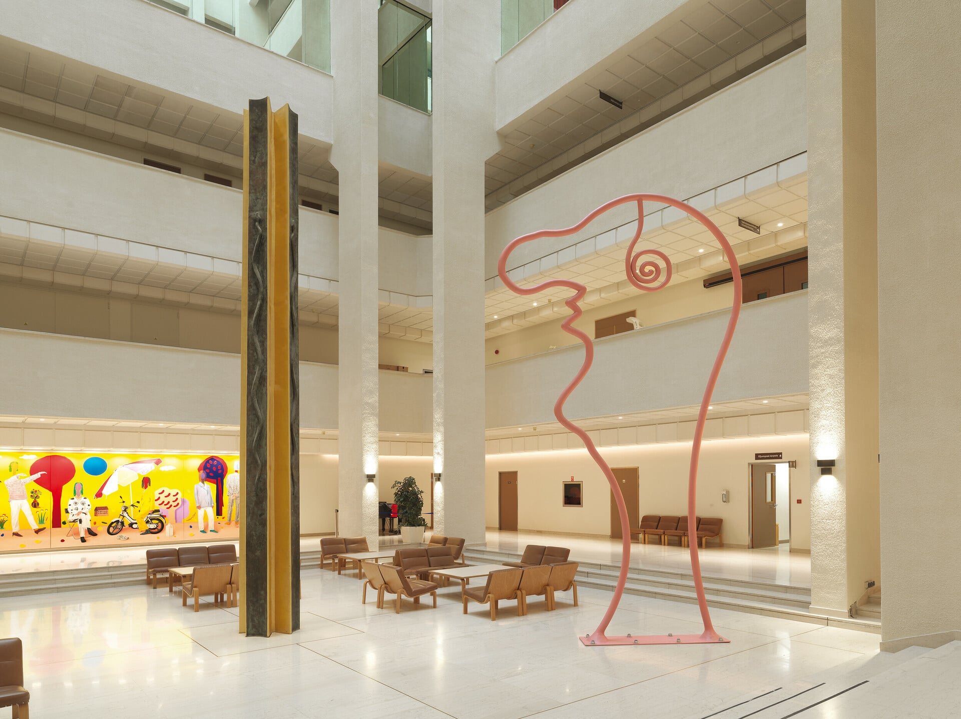 Είναι γεγονός πως η περιήγηση στο νέο κτίριο του Ωνασείου δημιουργεί μια τελείως διαφορετική αίσθηση από εκείνη που αποκομίζει κανείς στα περισσότερα ελληνικά νοσοκομεία: φως, καθαρότητα, απλότητα. Χώροι που μοιάζουν να έχουν σχεδιαστεί όχι μόνο για να λειτουργούν αποτελεσματικά, αλλά και για να μειώνουν το άγχος όσων περνούν από εδώ. Ανάμεσα στις πολλές αλλαγές της νέας υποδομής, ξεχωρίζουν και οι τοιχογραφίες του Θοδωρή Κωβαίου που αντλούν έμπνευση από την προϊστορία των μεταμοσχεύσεων, συνδέοντας τους τρεις ιατρικούς πολιτισμούς –της αρχαίας Αιγύπτου, της Ελλάδας και της χριστιανικής παράδοσης– με την ευαισθησία των παιδικών ζωγραφιών. Σε κάθε περίπτωση προσθέτουν έναν ευχάριστο, ανθρώπινο τόνο στο περιβάλλον.