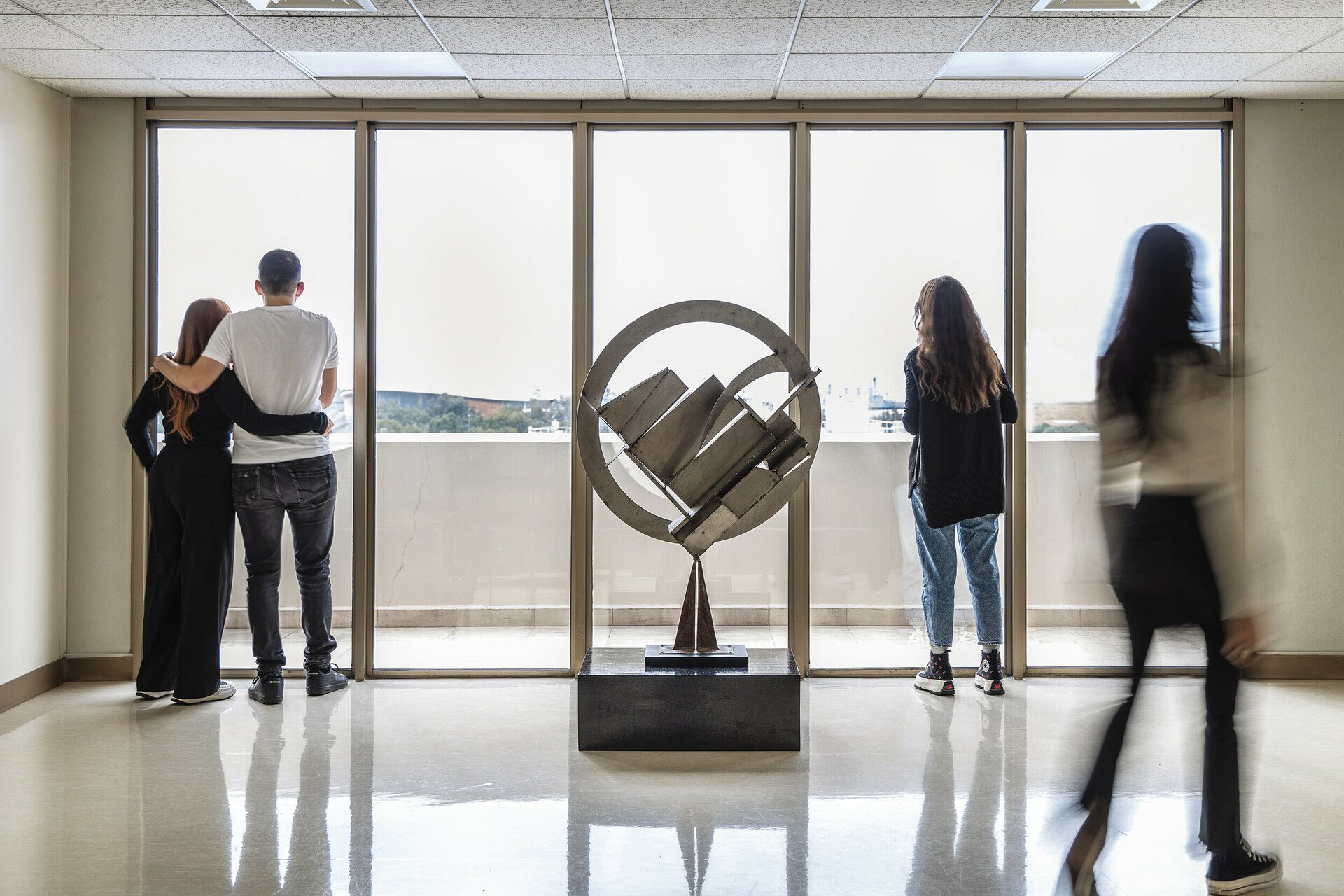 Στο ισόγειο στεγάζονται και τα εξωτερικά ιατρεία του νέου κτιρίου. Στη συνέχεια ανεβαίνουμε στον τέταρτο όροφο, εκεί όπου θα φιλοξενούνται οι μεταμοσχευμένοι ασθενείς σε ειδικά διαμορφωμένα δωμάτια αυξημένης φροντίδας. «Εδώ είναι πραγματικά το σπίτι του μεταμοσχευμένου», μου λένε χαρακτηριστικά. Παρατηρώ αμέσως ότι κάθε όροφος επικοινωνεί άμεσα με το προϋπάρχον κτίριο – αυτός άλλωστε ήταν ο βασικός στόχος του σχεδιασμού, ώστε να αποτελεί ένα ενιαίο, λειτουργικό σύνολο.
