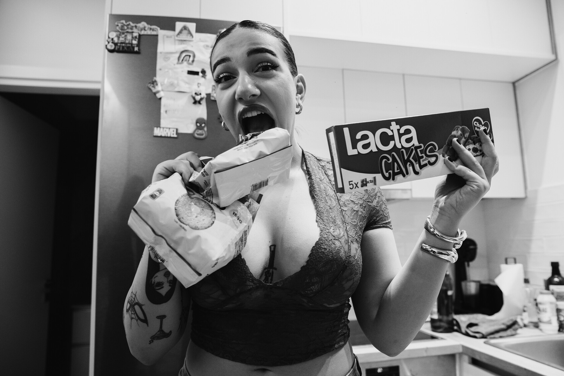 Οπότε πήρα κιλά, είχα και πολλά βουλιμικά επεισόδια –υπερφαγικά– λόγω των ψυχολογικών μου και είπα, αφού τρώω που τρώω σαν «βουβάλα» και αφού βλέπω muckbangs –που μ’ άρεσαν ήδη πολύ από το εξωτερικό όλα αυτά, ήχοι, μπουκιές–, ας το δοκιμάσω. Τραβάω το πρώτο, σκέφτομαι «δεν παίζει να ανέβει αυτό, θα με κράξει το πανελλήνιο». Από εκεί που με βλέπουν για το βάψιμο ξαφνικά θα τους αηδιάσω, αλλά είπα «στ’ αρχίδια μου», θα το ανεβάσω. Τότε είχα 70-80.000 followers από το βάψιμο, τα beauty και το «Get ready with me», αλλά ποτέ δεν μ’ είχαν για beauty queen.