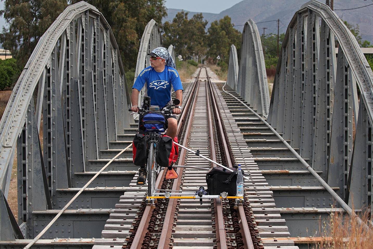 «Αντί να αντικαταστήσουμε τον σιδηρόδρομο με τον ποδηλατόδρομο, θα έπρεπε να αξιοποιήσουμε τη συνέργειά τους, να χρησιμοποιήσουμε δηλαδή το τρένο ως καταλύτη για την ανάπτυξη του ποδηλατικού τουρισμού». Φωτ.: tracerclub.gr