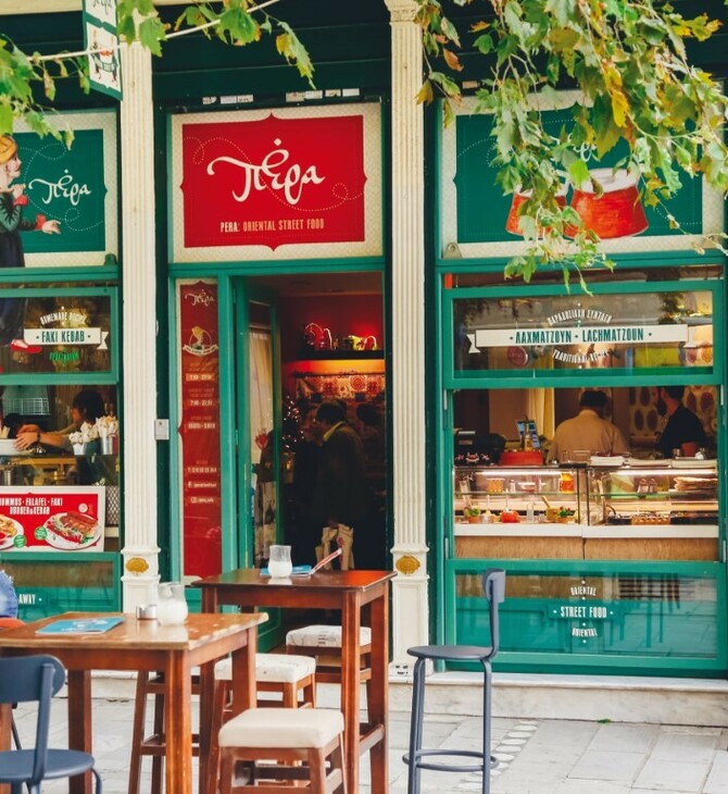 1.1.1970 PERA 1.1.1970 Το μικρό εστιατόριο σε ταξιδεύει γευστικά στην Ανατολή. Θα δοκιμάσεις υπέροχα πεϊνιρλί φτιαγμένα με φρέσκο ζυμάρι, με σουτζούκι, παστουρμά κ.λπ., λαχταριστά λαχματζούν και τη σπεσιαλιτέ του μαγαζιού, το Πέρα Κεμπάμπ. Δεν λείπουν οι vegetarian και vegan επιλογές.