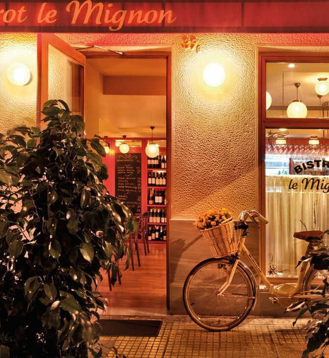 1.1.1970 BISTROT LE MIGNON 1.1.1970 Ένα αυθεντικό γαλλικό bistrot που φέρνει στην καρδιά της Αθήνας παριζιάνικο αέρα. H μικρή, ατμοσφαιρική σάλα με τα μαρμάρινα τραπέζια και τους δερμάτινους καναπέδες έχει γαλλικό στυλ και πολλή φινέτσα. Η κουζίνα έχει την υπογραφή του Απόστολου Τραστέλη και προτείνει κλασικές γαλλικές σπεσιαλιτέ με σύγχρονες εμπνευσμένες παρεμβάσεις. Σήμα του εστιατορίου εξακολουθεί να παραμένει η αντρεκότ Café de Paris με λεπτοκομμένες πατάτες τηγανητές. Highlight: Η ανανεωμένη και απολύτως ενημερωμένη οινική λίστα. Λειτουργεί: Τρίτη-Πέμπτη 20.00-00.00, Παρασκευή & Σάββατο 20.00-00.30. Μεσημέρια Σάββατο 14.00-17.00 Κυριακή 13.30-17.30. Κυριακή βράδυ και Δευτέρα κλειστά.