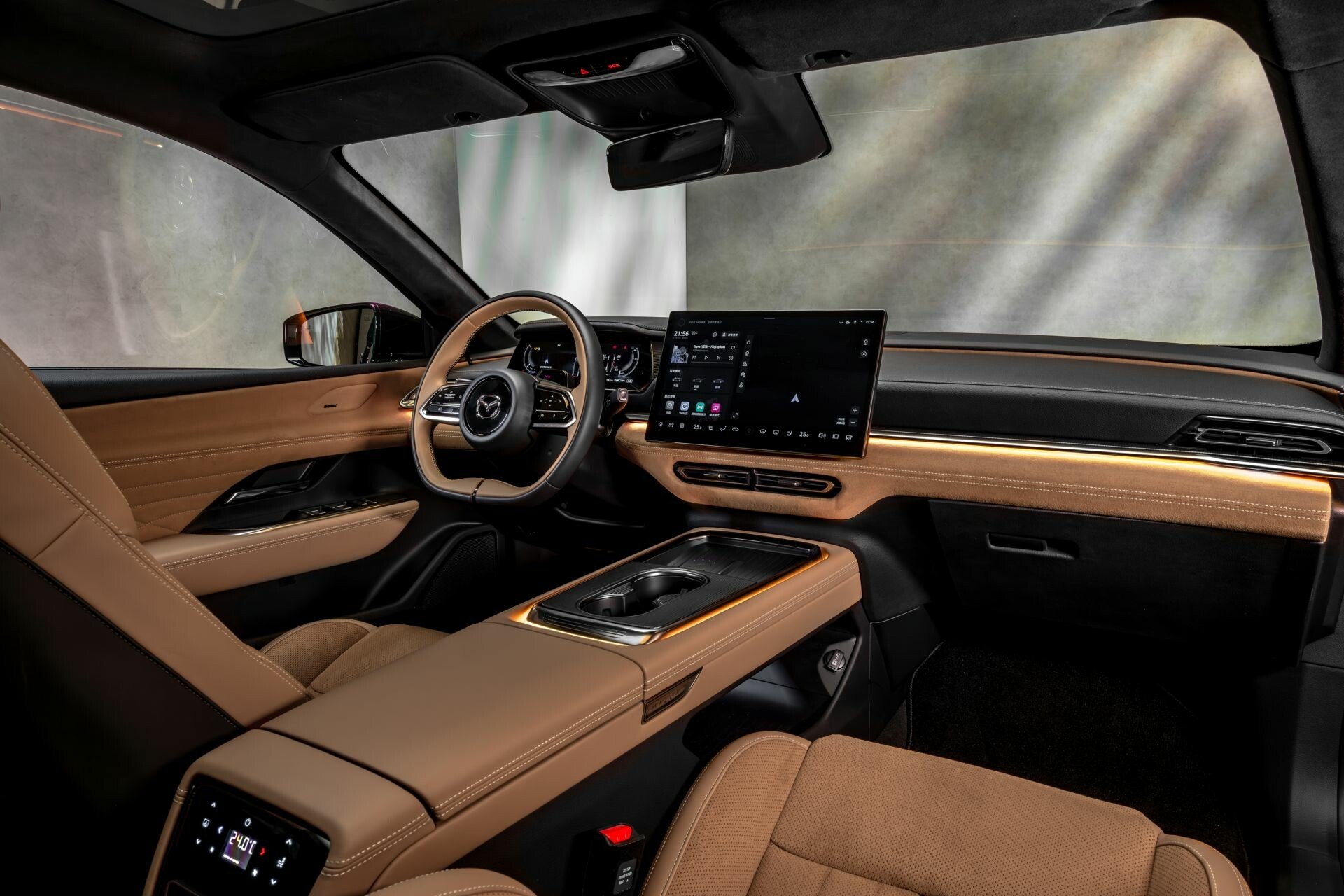 Αντίστοιχα, το εσωτερικό του Mazda 6e ακολουθεί τη σχεδιαστική αρχή του «ma», δηλαδή της δύναμης του κενού χώρου. Η καμπίνα διαθέτει σύγχρονη και premium εικόνα, συνδυάζοντας την ευρυχωρία με την απαραίτητη πολυτέλεια.