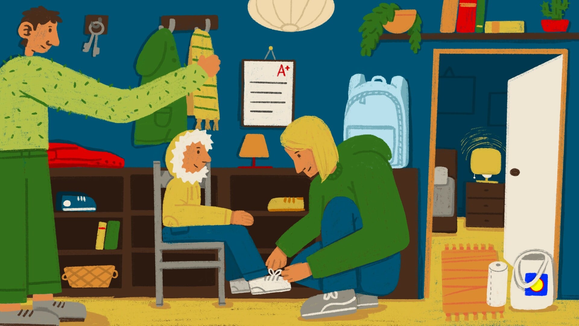 Κάτι μέσα της κουμπώνει. Ίσως γιατί ο όρος «κόμβος» της φαίνεται γνώριμος. Ίσως γιατί μοιάζει με αυτό που κάνει κι εκείνη καθημερινά, σε μικρότερη κλίμακα: να ενώνει, να οργανώνει, να φροντίζει χωρίς να φαίνεται. Το βράδυ, στο σπίτι, όλα επιστρέφουν στο ίδιο σημείο. Τα σακίδια, τα μπουφάν, οι δυνατές φωνές των αφίξεων. Στο τραπέζι, ο μικρός θυμάται την άσκηση. «Μαμά, σκέφτηκα ποιοι μας βοηθάνε χωρίς να τους ξέρουμε». «Και ποιοι είναι;» ρωτά εκείνη. «Είναι μαμάδες και μπαμπάδες που μένουν ξύπνιοι όταν τα παιδιά κοιμούνται. Σαν φωτάκια!»