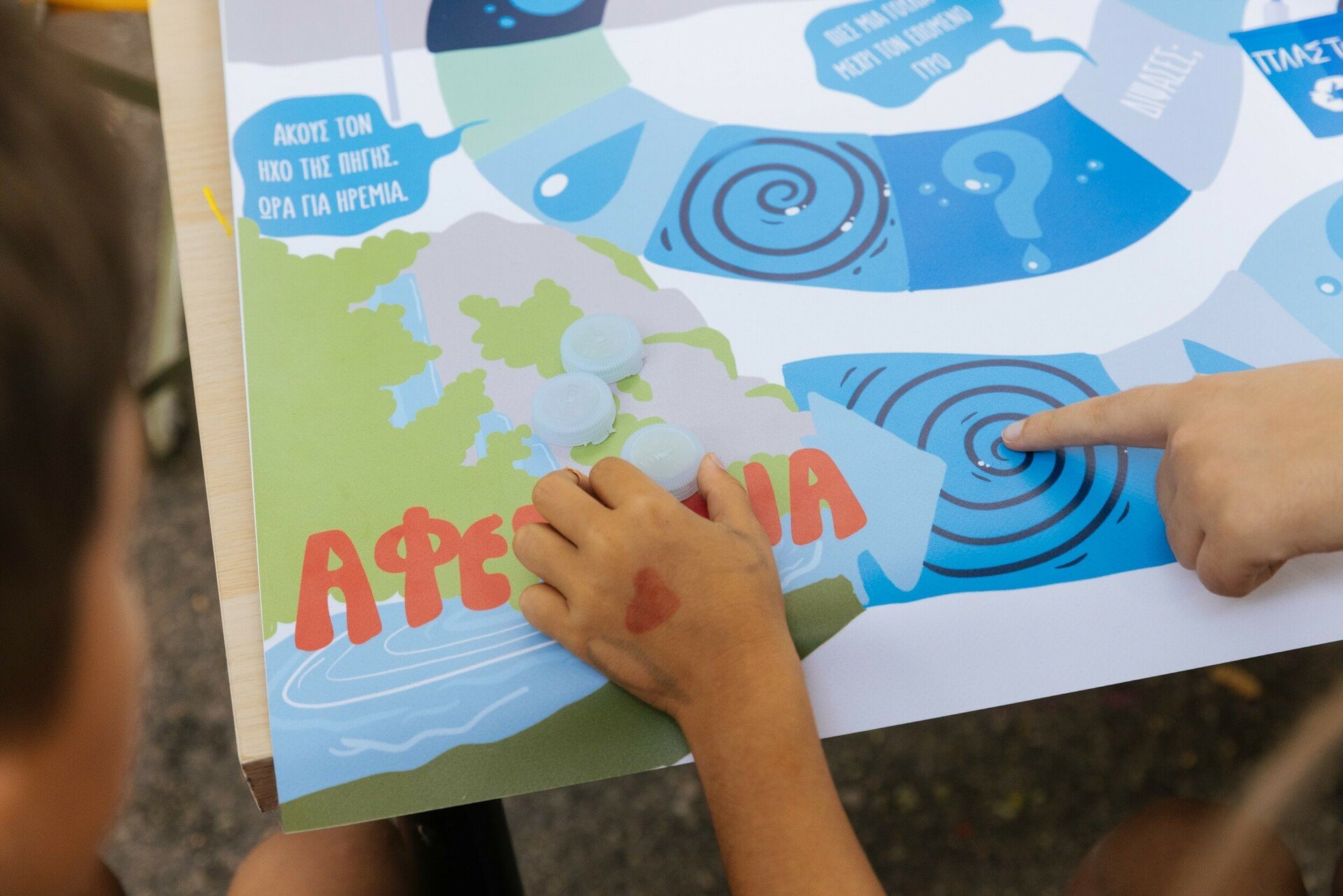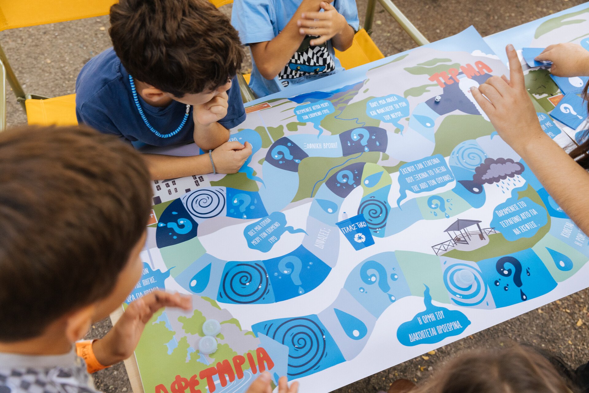 Κάπως έτσι γεννήθηκε και η ιδέα για το επιτραπέζιο παιχνίδι τύπου “φιδάκι”, που με τρόπο απλό και παιχνιδιάρικο, έδωσε στα παιδιά την ευκαιρία να μάθουν για την αξία του νερού, να ανακαλύψουν την έννοια της υπεύθυνης χρήσης των φυσικών πόρων και να κατανοήσουν, μέσα από το παιχνίδι, τι σημαίνει πραγματικά βιωσιμότητα.