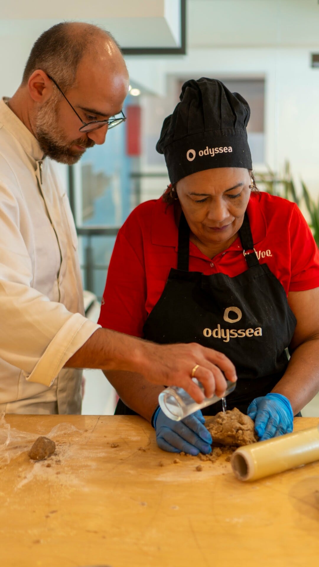Εδώ οι εκπαιδευτές εξηγούν πώς κάθε υλικό μπορεί να αξιοποιηθεί στο 100% οπότε οι συμμετέχοντες δεν μαθαίνουν απλώς συνταγές· μαθαίνουν έναν εντελώς νέο τρόπο να βλέπουν το φαγητό: ως έναν κύκλο που μπορεί να παραμείνει ανοιχτός, χωρίς περιττές απώλειες.