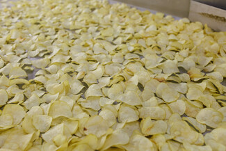 Στη γραμμή παραγωγής παρακολουθήσαμε το «ταξίδι» της πατάτας από την παραλαβή της, στο πλύσιμό της και έπειτα στη διαδικασία ξεφλουδίσματος, από όπου η πατάτα πλένεται ξανά και κόβεται σε λεπτές φέτες για να τηγανιστεί αμέσως μετά.