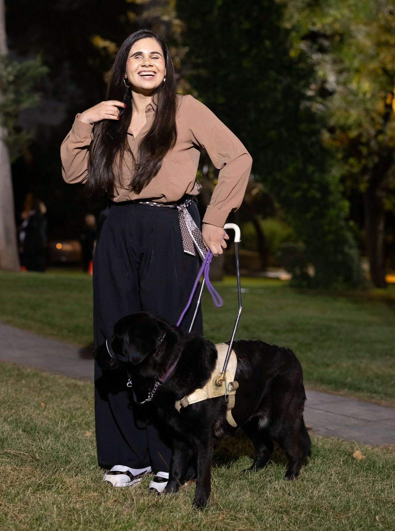 «Έχουμε φοβερή ευθύνη απέναντί της, γιατί ένα κουτάβι-οδηγός χρειάζεται πολλή προσοχή τους πρώτους μήνες. Είναι πολύ σημαντικό να ακολουθούνται οι οδηγίες για το πώς θα παίξεις μαζί της. Νομίζω το πιο δύσκολο κομμάτι για εμάς αλλά και τους συναδέλφους μας ήταν να μείνουν πιστοί στις οδηγίες της εκπαίδευσής της. Για παράδειγμα, τρώει με συγκεκριμένο πρόγραμμα και εντολές, διαφορετικά αν της προσφέρεις φαγητό την αποσπάς. Επιπλέον, δεν επιτρέπεται να τη χαϊδέψει κάποιος άγνωστος όταν τη βγάζουμε βόλτα με το λουρί της στο πάρκο -γιατί σαν σκύλος -οδηγός, όταν φορά το λουρί δουλεύει».