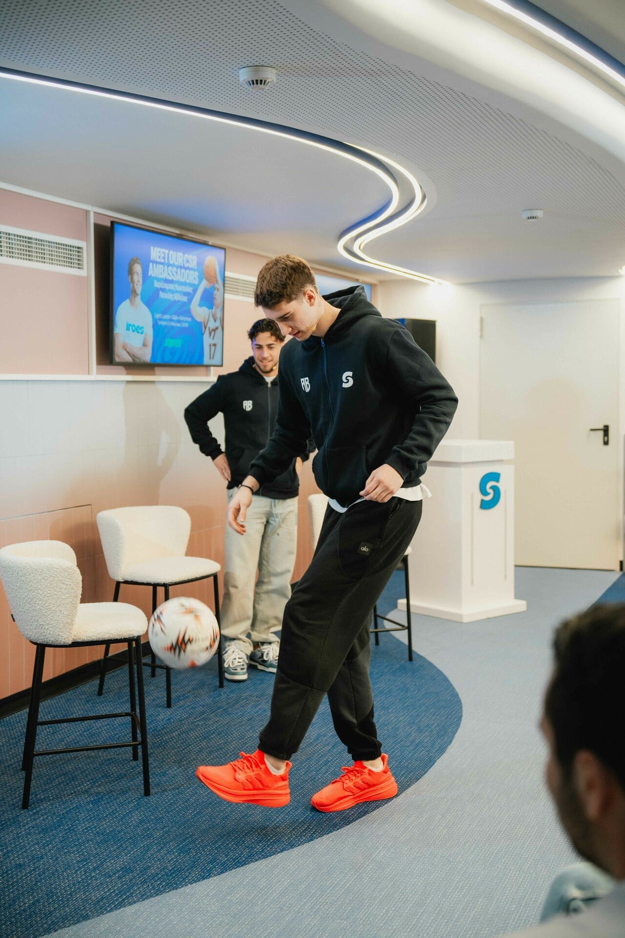 Δύο από τα πιο υποσχόμενα ονόματα του ελληνικού αθλητισμού, ο ποδοσφαιριστής Χαράλαμπος Κωστούλας και ο μπασκετμπολίστας Νεοκλής Αβδάλας, επισκέφθηκαν πρόσφατα τα γραφεία της Stoiximan για ένα event με τους εργαζομένους της εταιρείας κι έφεραν μαζί τους ακριβώς ό,τι περιμένεις από δύο next big things: ενέργεια, ιστορίες και μια αναπάντεχη αντιστροφή ρόλων.