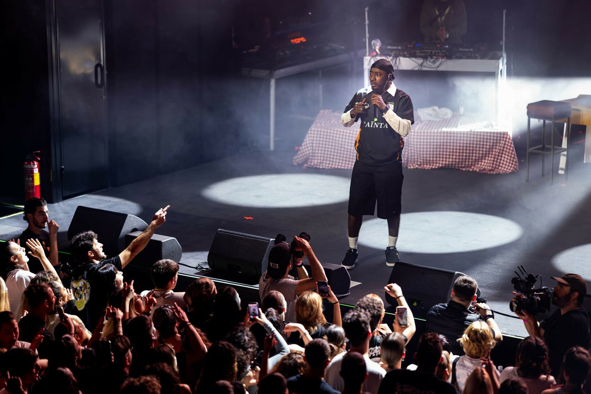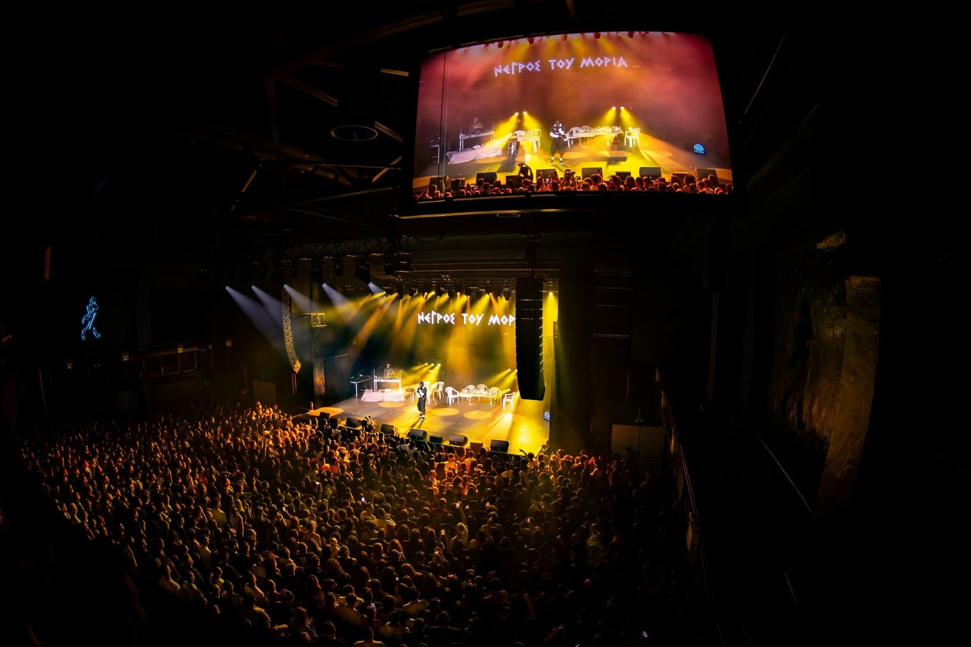 Στο μεταξύ το live ετοιμαζόταν να ξεκινήσει και ο χώρος είχε ήδη γεμίσει ασφυκτικά. Με το άνοιγμα των φώτων, η ενέργεια εκτοξεύτηκε. Από τα πρώτα δευτερόλεπτα, όλοι γίναμε «ένα». Ο Νέγρος του Μοριά εμφανίστηκε στη σκηνή φορώντας για πρώτη φορά το συλλεκτικό jersey του collab. Και η συνέχεια αναμενόμενη και ταυτόχρονα απρόβλεπτη. Γιατί η βραδιά όχι απλά κινήθηκε χωρίς παύση, αλλά εξελίχθηκε σε ένα εκρηκτικό live που ισορρόπησε τέλεια ανάμεσα σε συναυλία και σύγχρονο πανηγύρι, συνδυάζοντας ραπ και ρεμπέτικα στοιχεία με το σκηνικό να παίζει καθοριστικό ρόλο.