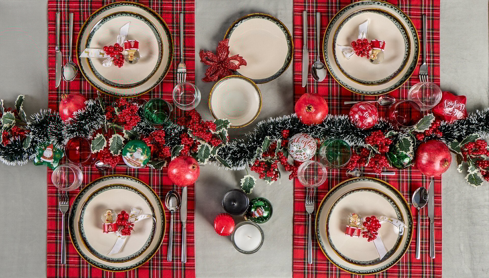 Πάρε έμπνευση από το Christmas red section για ένα ζεστό, cosy και πιο παραδοσιακό χριστουγεννιάτικο look. Ποτήρια και σερβίτσια με κόκκινες ή πράσινες λεπτομέρειες, κόκκινα κεριά και μαξιλάρια, ένα ταρτάν ράνερ αλλά και διακοσμητικά όπως γλειφιτζούρια και κλαδιά με μούρα θα συνεχίσουν το κόκκινο theme που έχεις ήδη υιοθετήσει στο υπόλοιπο σπίτι και θα κάνουν την κουζίνα ή το σαλόνι σου απόλυτα γιορτινό!