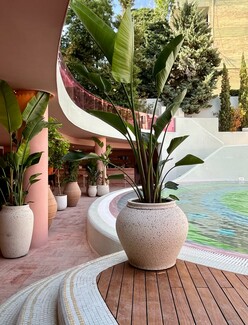 Με πρωταγωνιστή το χρώμα, αλλά πλέον με προσανατολισμό στις θερμές, παστέλ αποχρώσεις του ροζ και στο φυσικό πράσινο, καθώς και σταθερή αδυναμία στο σύγχρονο design, η πισίνα του Semiramis υποδέχεται ανανεωμένη το καλοκαίρι του 2024.