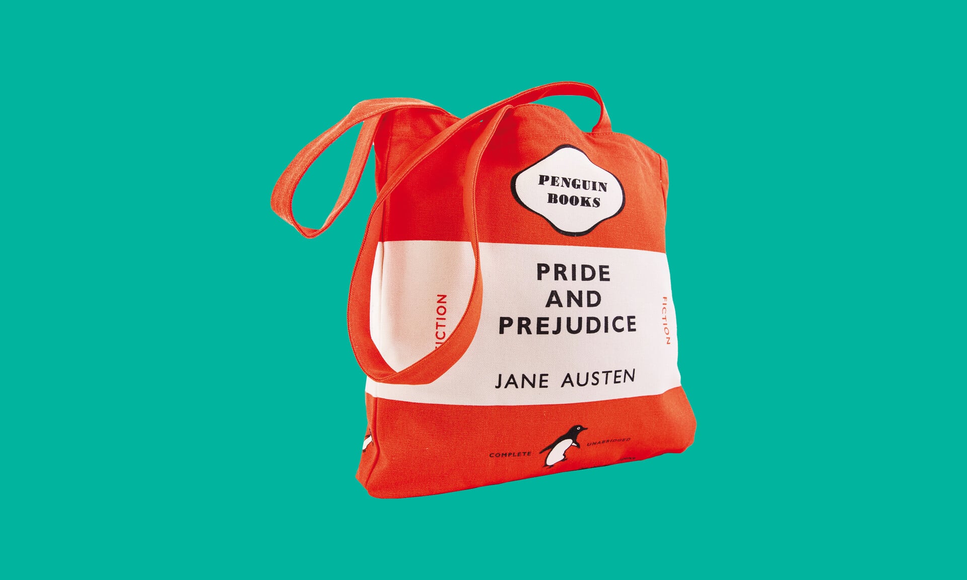 Πάνινη τσάντα «Pride and Prejudice» σε πορτοκαλί χρώμα.