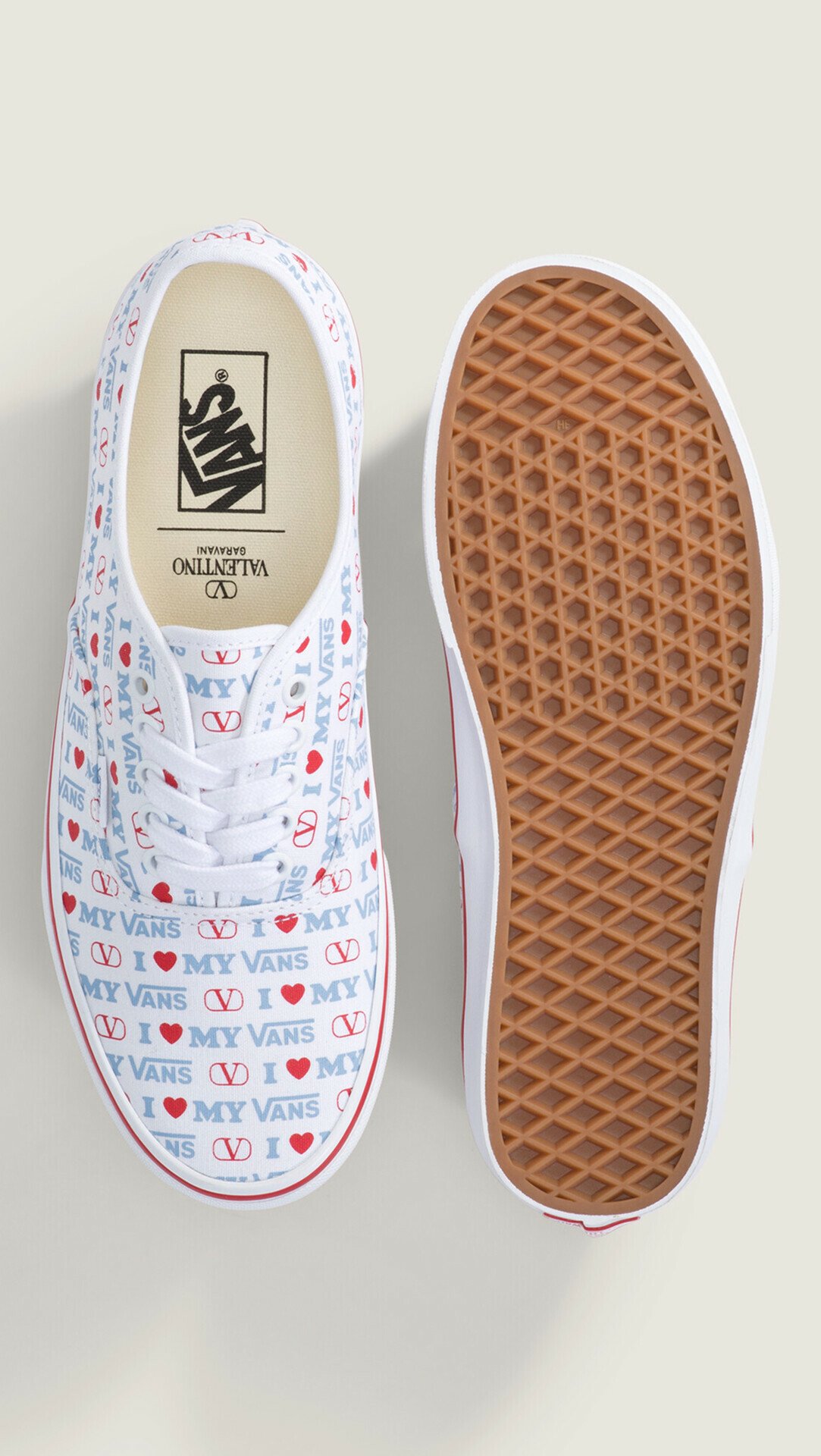Κάθε ζευγάρι έρχεται σε συλλεκτικό packaging που συνδυάζει το checkerboard της Vans με το VLogo Signature της Valentino.