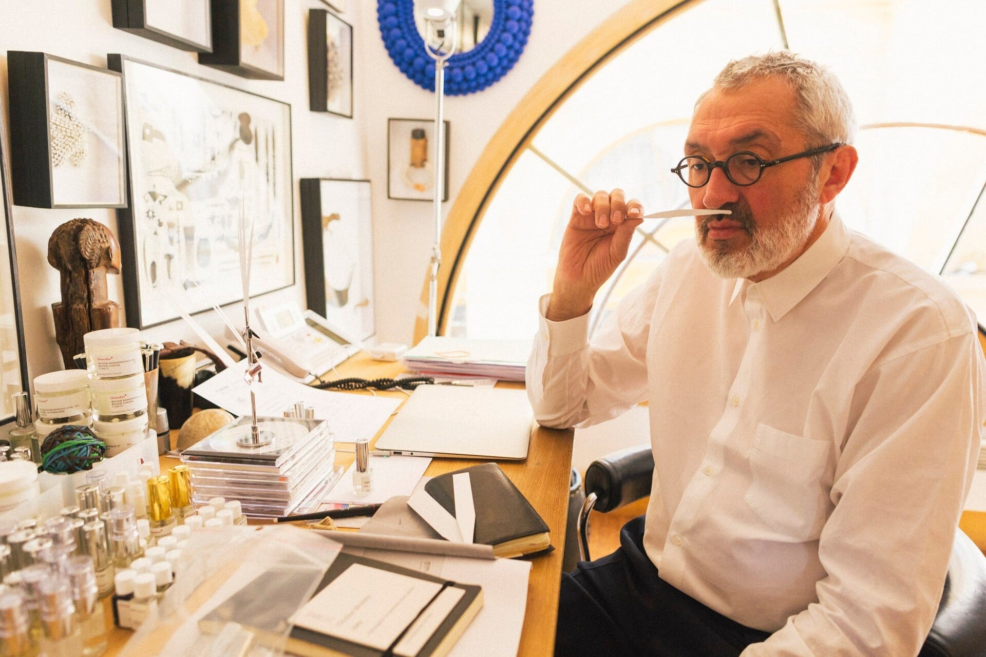 — Κύριε Αστουγκβιέιγ, παρότι τις τελευταίες δεκαετίες έχετε συνδέσει το όνομά σας με την Comme des Garçons ως καλλιτεχνικός διευθυντής των αρωμάτων του brand, δεν είστε μια τυπική «μύτη». Το σύμπαν σας περιλαμβάνει γλυπτική, σχεδιασμό επίπλων και κοσμημάτων, δημιουργία αντικειμένων. Πώς θα περιγράφατε εσείς τον εαυτό σας;