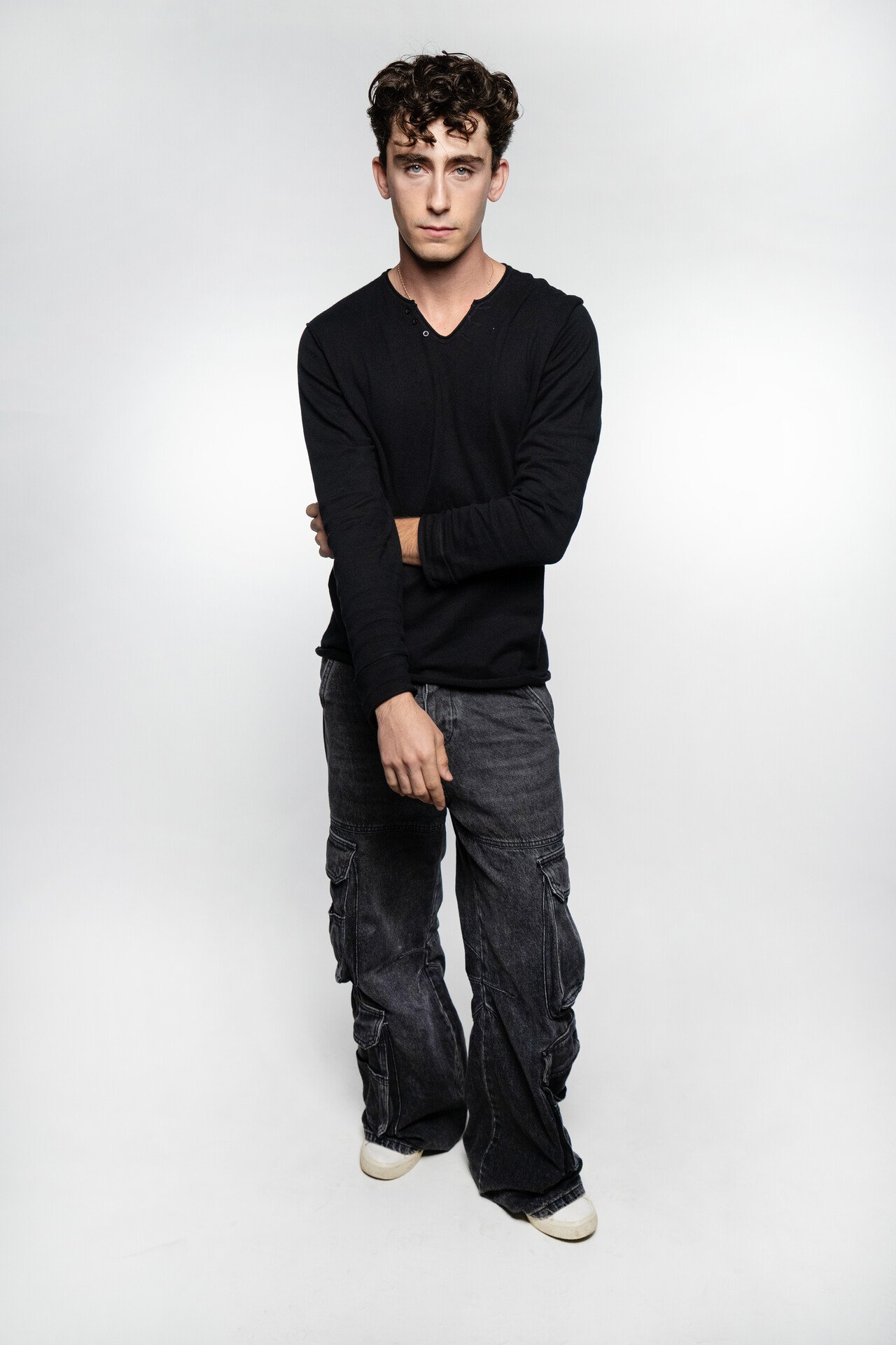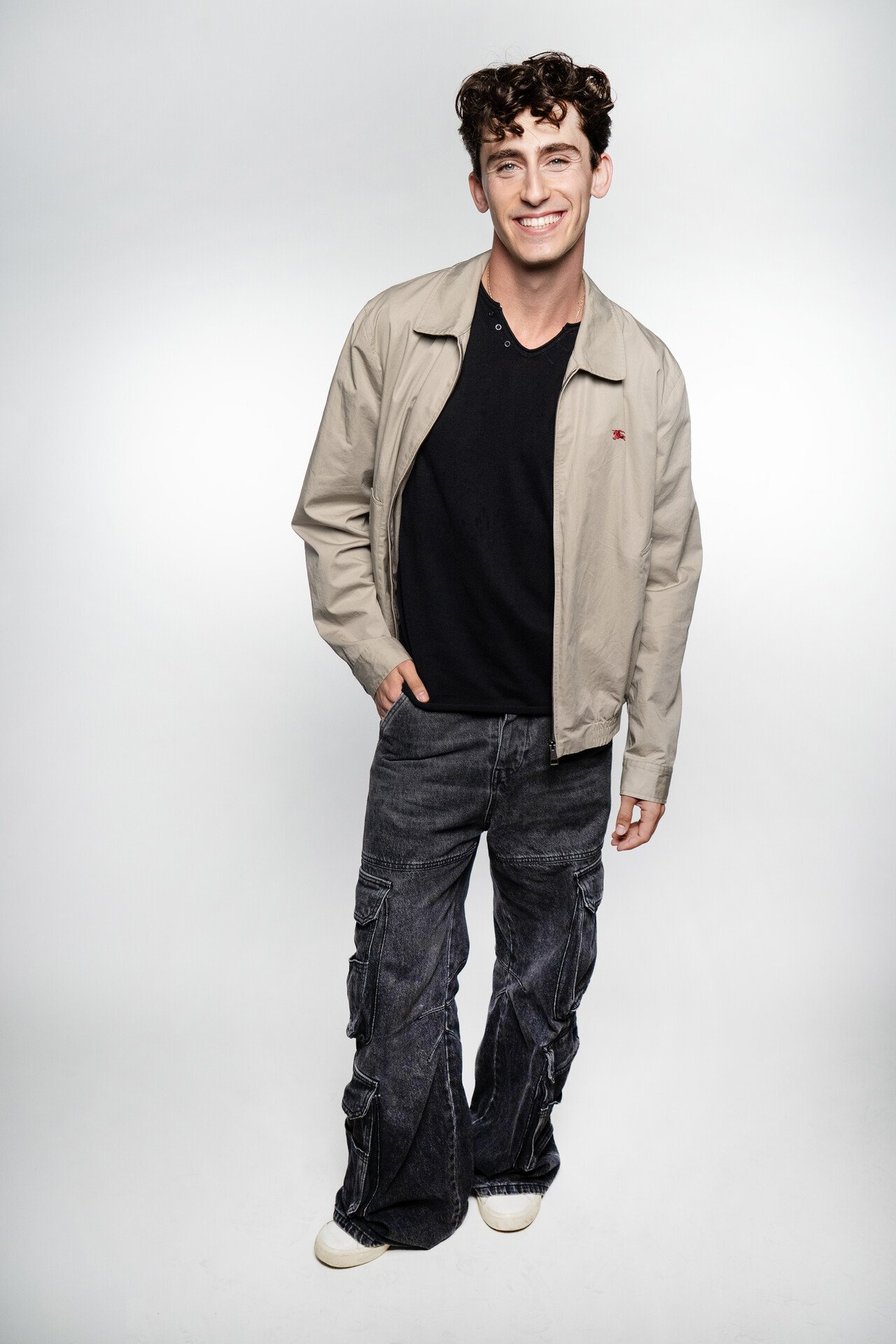 Σήμερα φοράω denim cargo από Diesel –το πήρα €350, νομίζω–, μια λευκή μακρυμάνικη μπλούζα από Dirty laundry (€60), ένα τζάκετ από Burberry που ήταν του μπαμπά μου και sneakers από Veja (€150).
