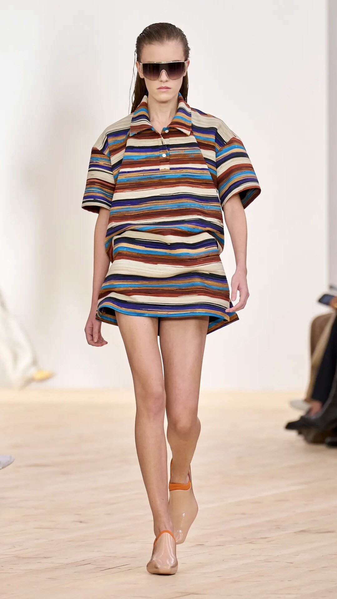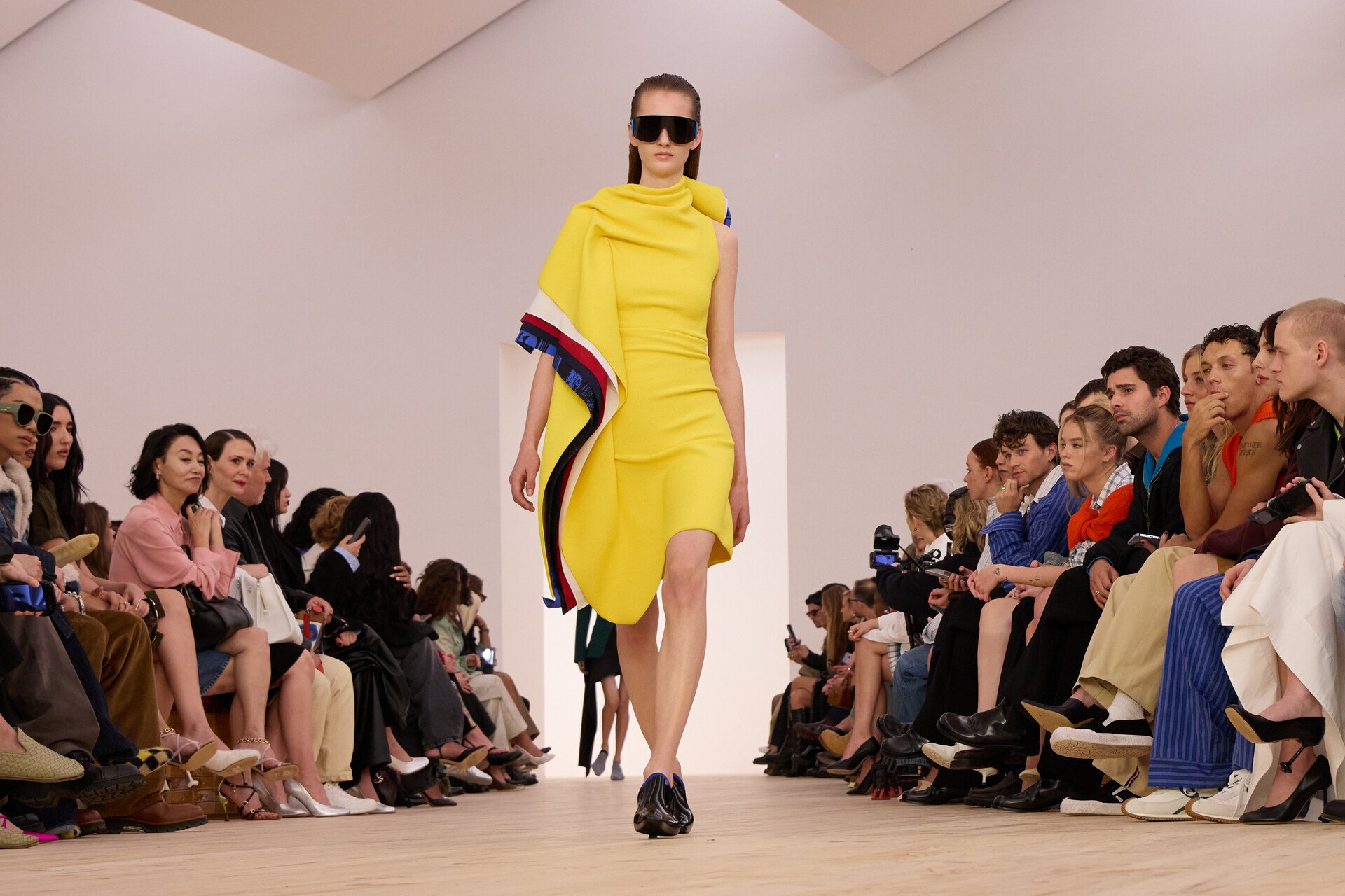 Και το έκαναν με μια από τις πιο εκρηκτικές συλλογές της σεζόν στο Παρίσι, μέχρις στιγμής, που «φώναζε» άνοιξη και χαρά της ζωής. Τον τόνο έδινε ο πίνακας Κίτρινη Λωρίδα με Κόκκινη Καμπύλη του Ellsworth Kelly στην είσοδο του show (δάνειο από έναν φίλο συλλέκτη), με τα ηλιόλουστα χρώματα που δηλώνει ο τίτλος του έργου να προεκτείνονται στην πασαρέλα, σε ξεκάθαρα αλλά περίπλοκα τεχνικά ρούχα.