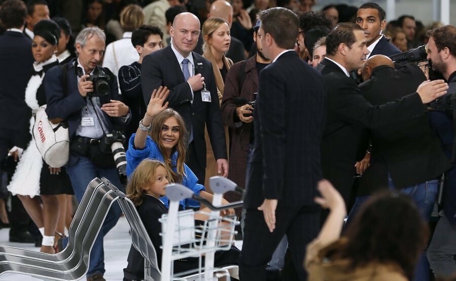 H εκθαμβωτική ολόλευκη αίθουσα γέμισε κόσμο και ο Karl Lagerfeld παρουσίασε μπροστά σε μερικές από τις διασημότερες και πλουσιότερες γυναίκες του κόσμου τα μοντέλα του, ντυμένα από την κορυφή ως τα νύχια με Chanel. Όταν η ένταση της μουσικής ανέβηκε και στο βάθος του ολόλευκου διαδρόμου εμφανίστηκε το πρώτο μοντέλο, δεκάδες χέρια που κρατούσαν iPhones υψώθηκαν και κατέβηκαν όταν στο φινάλε, ο 'Kaiser' του εμβληματικού οίκου έκανε την αστραπιαία εμφάνισή του. Οι New York Times κάνουν λόγο για ένα από τα πιο φανταχτερά και εντυπωσιακά σόου μόδας του οίκου και στέκονται με εκτενή αναφορά στο κοινό που καθηλώθηκε για να δει τα ρούχα και αξεσουάρ αξίας χιλιάδων ευρώ, να περνούν από μπροστά τους. Στις πρώτες καρέκλες βρέθηκαν εκτός από διάσημες και πολύ εύπορες πελάτισσες από όλο τον κόσμο, οι οποίες ήταν ντυμένες όλες με Chanel, σημειώνει η εφημερίδα. Ανάμεσα τους ξεχώρισαν σύζυγοι Ρώσων και Βραζιλιάνων μεγιστάνων. Ο Παριζιάνικος ιστορικός οίκος που είναι ίσως το πιο αντιπροσωπευτικό δείγμα κομψότητας της γαλλική μόδας, βρίσκεται άλλωστε στην κορυφή των ειδών πολυτελείας και θεωρείται η ναυαρχίδα και το σήμα κατατεθέν των γυναικών που ξοδεύουν περιουσίες για shopping.