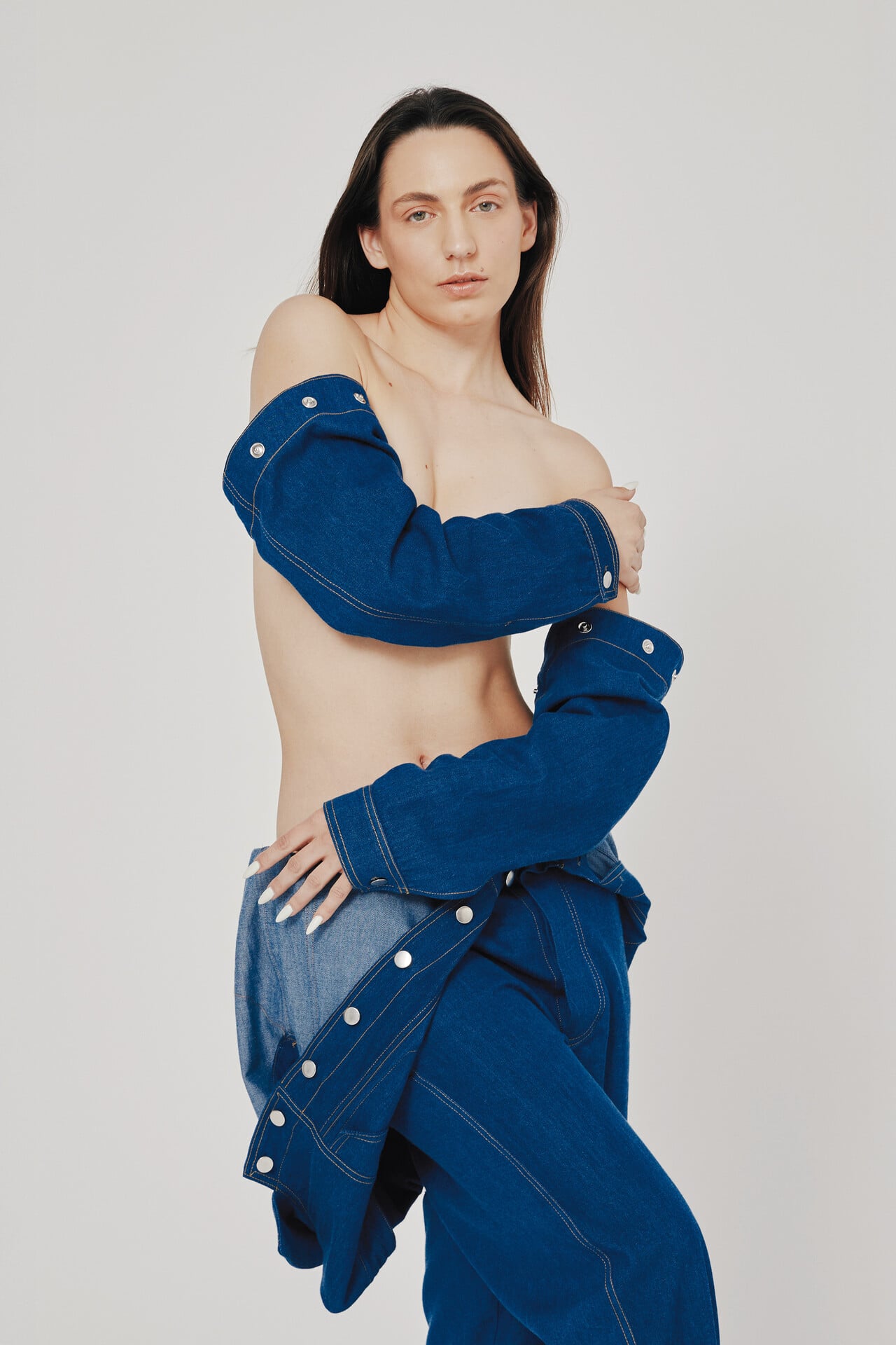 Η Μιρκέτα Βιδάλη, δημιουργός του «No Thinkin», εξηγεί πως για τα τζιν που δημιουργεί εμπνέεται από τα ’90s και το vintage denim, αλλά τα φέρνει στο σήμερα με καθαρές γραμμές και διαχρονικές σιλουέτες. Σκοπός της είναι κάθε κομμάτι να έχει χαρακτήρα, αλλά και άνεση, να το φοράς ξανά και ξανά, χωρίς να το σκέφτεσαι.