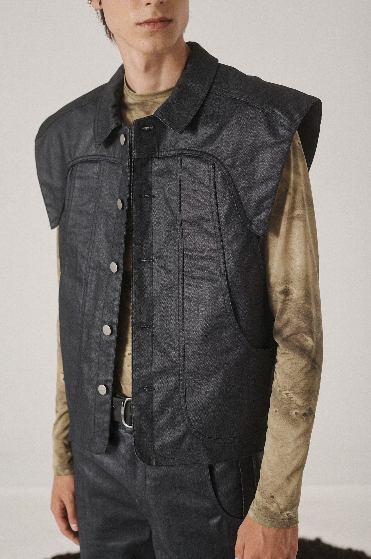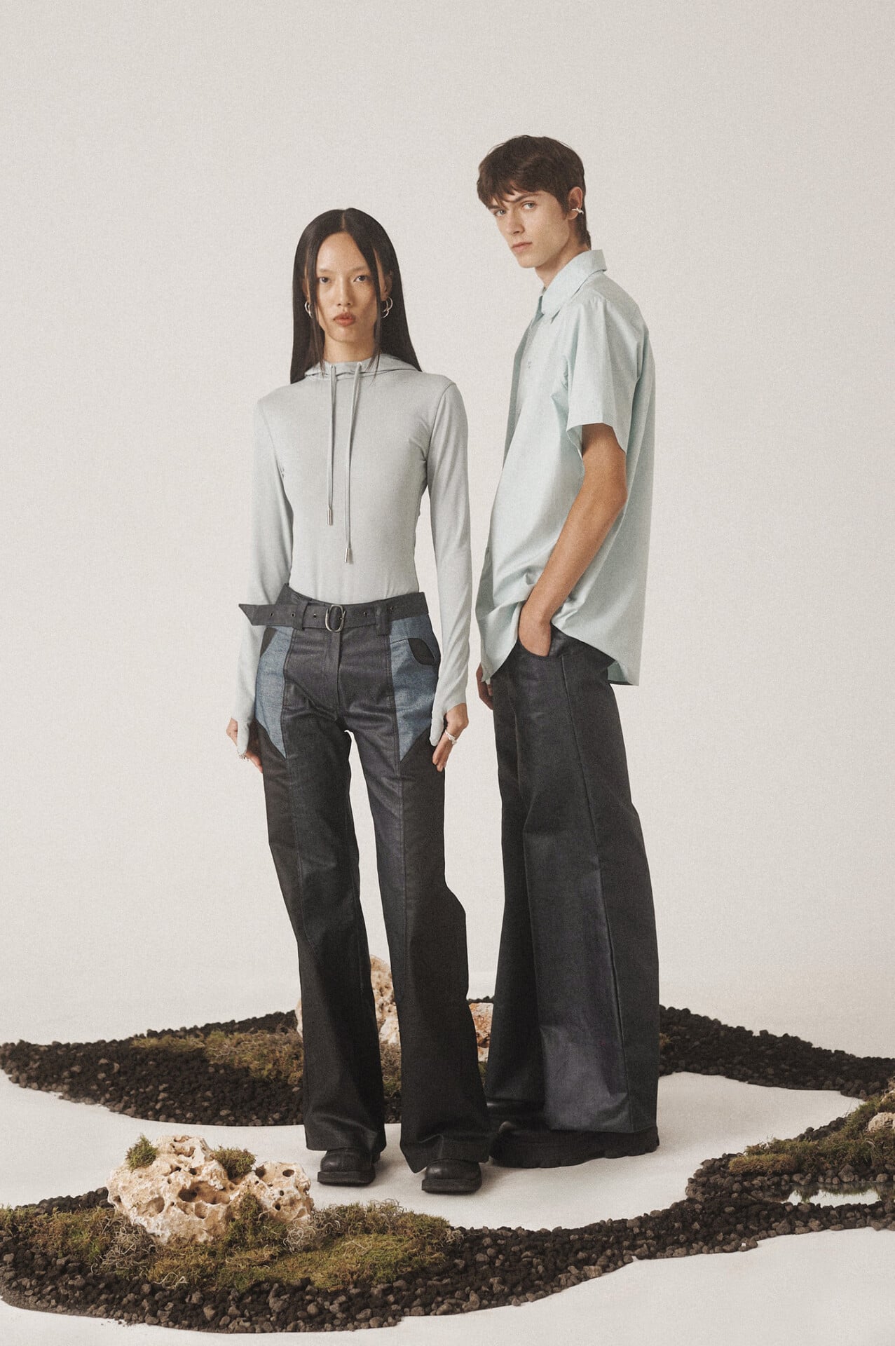 Η σχεδιάστρια Ειρήνη Μαγγίνα δημιούργησε το MAGGINA, ένα unisex brand με αρχιτεκτονική σχεδιαστική προσέγγιση στα ρούχα. Οι συνθέσεις των υφασμάτων που επιλέγει είναι κυρίως φυσικές, ενώ οι μη φυσικές προέρχονται αποκλειστικά από deadstock προμηθευτές. Όπως λέει η ίδια, «σε αυτήν τη συλλογή έχω δουλέψει με το κερωμένο τζιν. Η προέλευση του κερωμένου τζιν εντοπίζεται στη ναυτική βιομηχανία του 19ου αιώνα. Οι ναυτίλοι αρχικά επεξεργάζονταν το βαμβάκι με λιναρόσπορο για να κάνουν τις ιστιοσανίδες και τα ρούχα ανθεκτικά στο νερό. Το κερωμένο τζιν παραμένει βασικό στοιχείο, προσφέροντας πολλά πλεονεκτήματα. Οι ανθεκτικές στο νερό ιδιότητές του το καθιστούν ιδανικό για απρόβλεπτες καιρικές συνθήκες, ενώ η αντοχή του είναι μεγαλύτερη από αυτή του κανονικού τζιν. Επίσης, το κερωμένο τζιν αναπτύσσει μια πατίνα με την πάροδο του χρόνου, προσφέροντας σε κάθε ρούχο μια προσωπική εμφάνιση που βαθαίνει με τη χρήση. Δίνει γενικότερα μια edgy και σκοτεινή αισθητική».