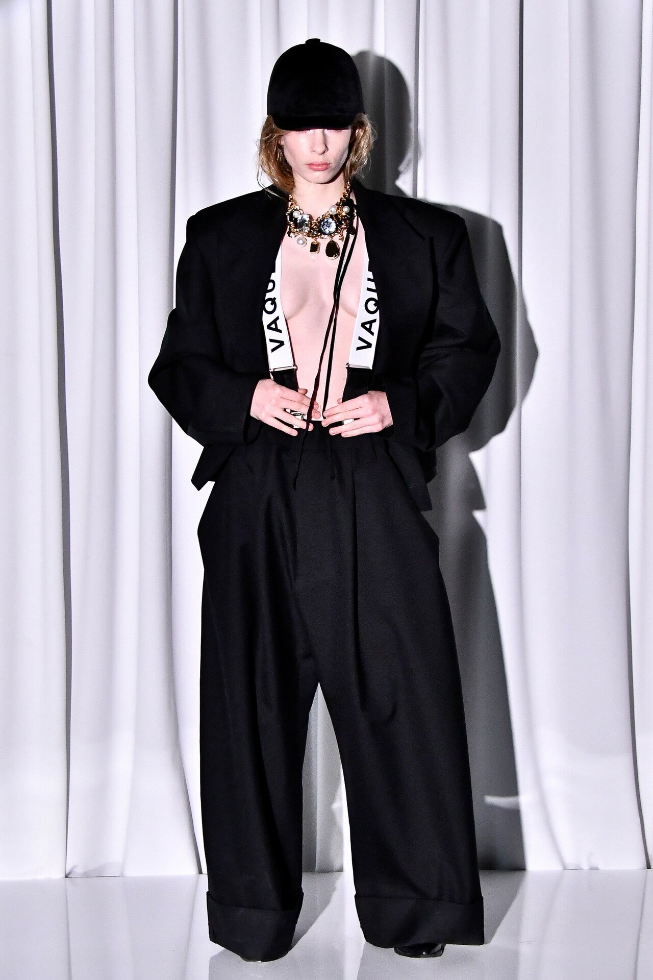 Το πεδίο, όμως, όπου πραγματικά λάμπει η Vaquera είναι η αιρετική της ικανότητα της να πασπαλίζει εντελώς βατά ρούχα με μικρές ανατροπές: ένα μαύρο powersuit φορέθηκε με ένα jockey και φαρδιές τιράντες πάνω σε ένα γυμνό μπούστο· μισά σακάκια, φουσκωτά μανίκια με βολάν και τεράστιοι φιόγκοι από σατέν συγκολλήθηκαν στα περισσότερα looks· πολλά φορέματα ήταν στ' αλήθεια μισά φορέματα, κρεμασμένα μονόπαντα πάνω από μυτερά σουτιέν και πάνω από παντελόνια φόρμας ή φούστες με κομμάτια ψεύτικης γούνας· σταυρωτά ντένιμ σακάκια με τετράγωνους ώμους συνδυάστηκαν με μίνι φούστες σε σχήμα μανιταριού. Στον κόσμο της Vaquera δεν υπάρχουν ενδυματολογικοί κώδικες. «Υπάρχει μόνο ο κατάλληλος τόπος και χρόνος να φορέσεις κάτι», εξηγούν οι σχεδιαστές ή, θα λέγαμε, κάτι ακόμα πιο συναρπαστικό, να φορέσεις το λάθος ρούχο την κατάλληλη στιγμή.