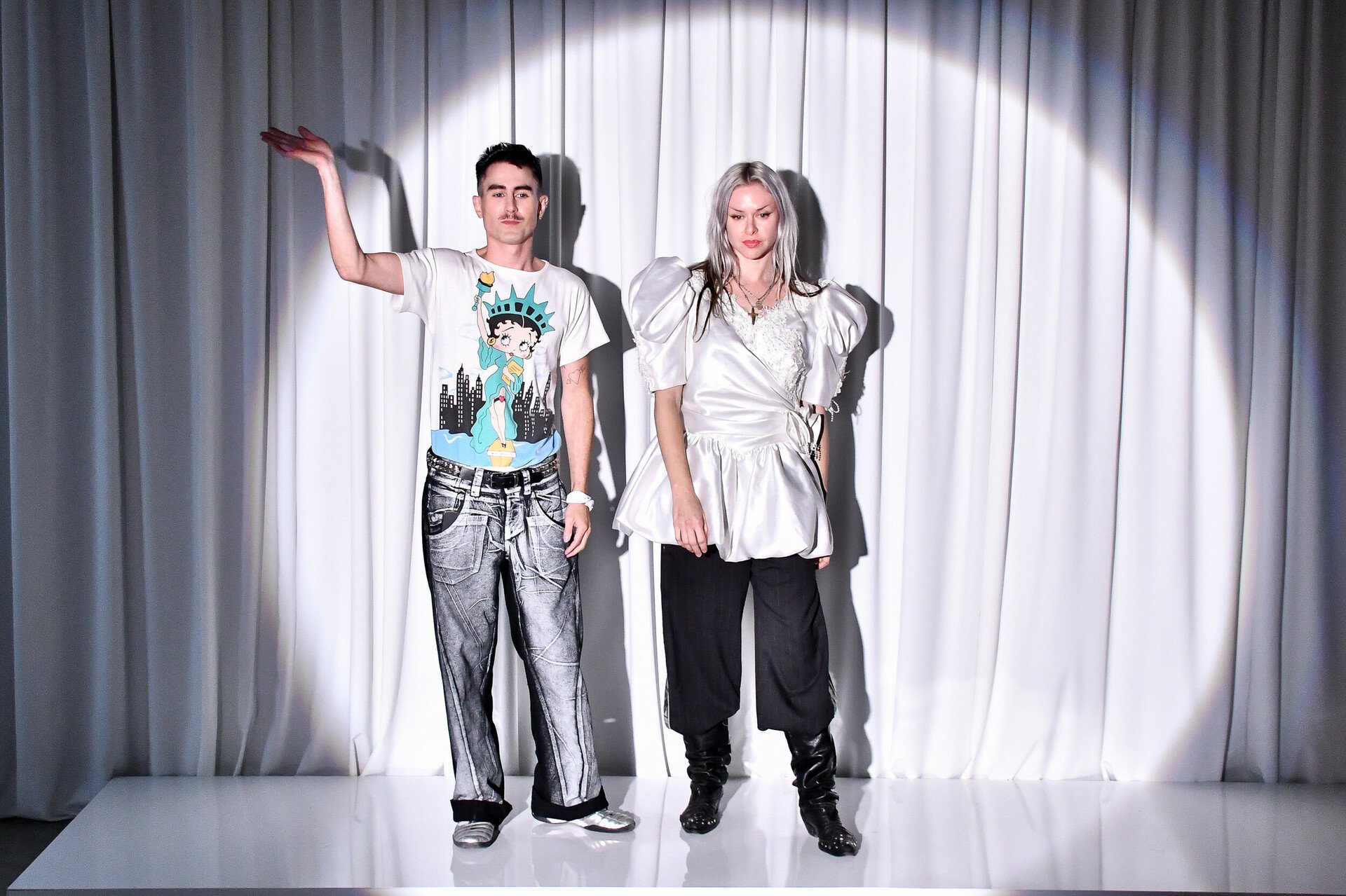 «Το Παρίσι θεωρείται το επίκεντρο του καλού γούστου. Τι σημαίνει όμως πια αυτό; Όταν αρχίσεις να βλέπεις τον κόσμο μέσα από τα δικά μας μάτια, αυτές οι κατηγορίες δεν υφίστανται», επισήμαναν στο δελτίο τύπου της επίδειξής τους για την άνοιξη του 2026 κι έστειλαν στην πασαρέλα ένα χαοτικό ποτ πουρί από τα '80s, ανακατεύοντας υφάσματα με έντονα graffities, lingerie και αυτοσχέδια φορεματάκια χορού αποφοίτησης. Φανταστείτε τη Vivienne Westwood να συναντά τη Madonna στη φάση του «Like a virgin» σε ένα πεδίο αμφισβήτησης και παιχνιδίσματος που ιδανικά εκφράστηκε με την εμφάνιση της queer ράπερ Ashnikko: ένας αφρός από πτυχωτό ζαχαρένιο ροζ ύφασμα με ένα γιγαντιαίνο κορσάζ στον έναν ώμο.
