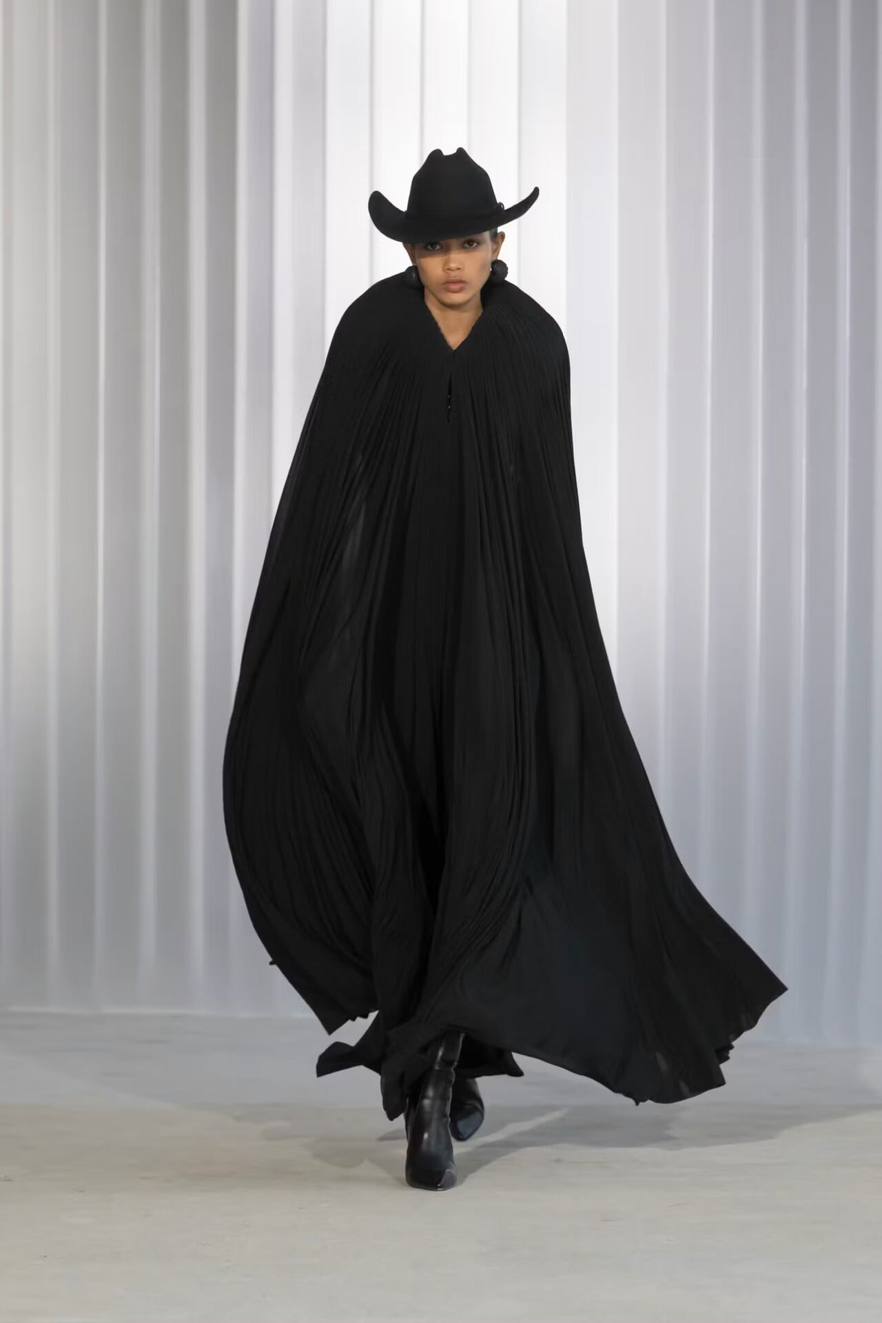 Οι φούστες με τις προτεταμένες κορυφές στο μπροστινό τους μέρος ήταν ένα τέτοιο εντυπωσιακό κομμάτι που ένωνε την ιστορία του οίκου με την αναρχική διάθεση του Lantink. Το ίδιο και τα looks που χτίστηκαν με διαφορετικές στρώσεις ρούχων, όπως και το μακρύ κόκκινο βελούδινο φόρεμα με τους παραγεμισμένους δακτύλιους γύρω από την περιφέρεια (μια εικόνα κατευθείαν από το έξω σύμπαν!) ή ένα μαύρο πλισέ top, διασταύρωση φορεσιάς φλαμένκο και γελαδάρη.