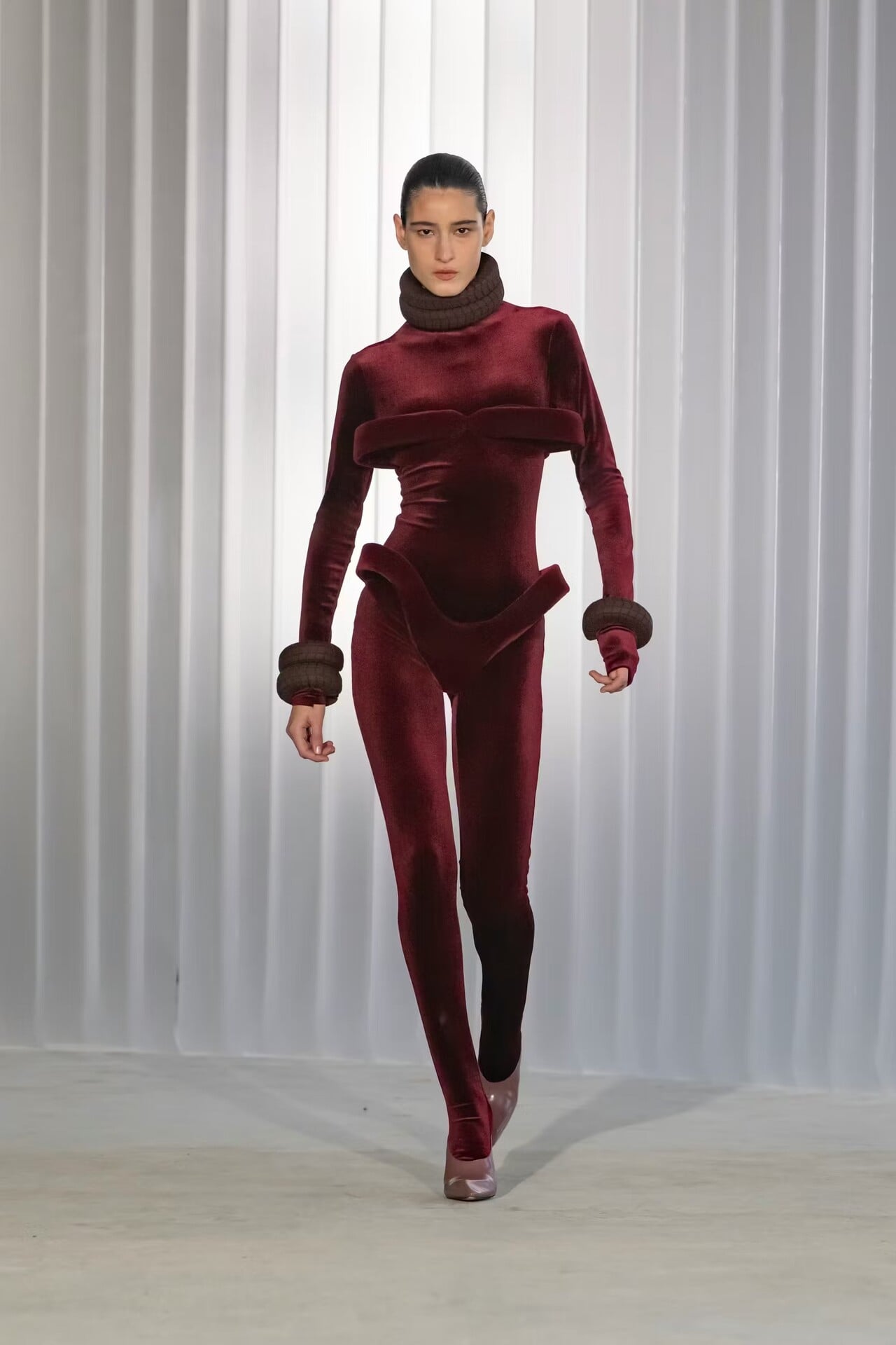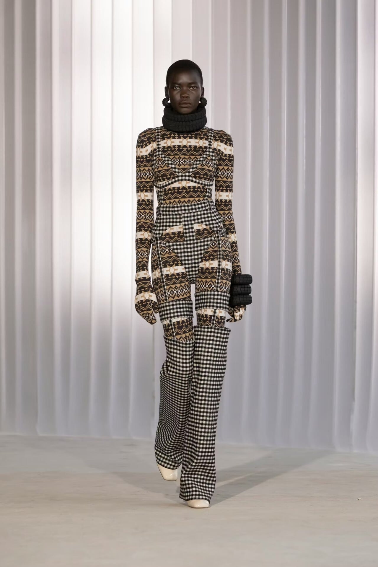 Μετά τα κοστούμια και τα κορίτσια του ροντέο σειρά είχαν τα διαστημικά bodies με ψηφιακά τυπώματα που μιμούνταν το σώμα μιας ξύλινης μαριονέτας και οι πλεκτές ζακάρ φόρμες, κάποιες με προτεταμένες λωρίδες υφάσματος στο στήθος και στην πλάτη που στο προφίλ θύμιζαν χερούλια αγγείου.
