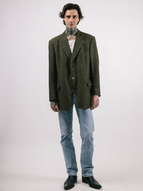 Αυτήν τη στιγμή είμαι σε χαλαρή διάθεση, εξού και η «στολή» τζιν και φανέλα, αλλά λόγω κρύου επέλεξα και ένα μάλλινο σακάκι στο αγαπημένο μου olive χρώμα.