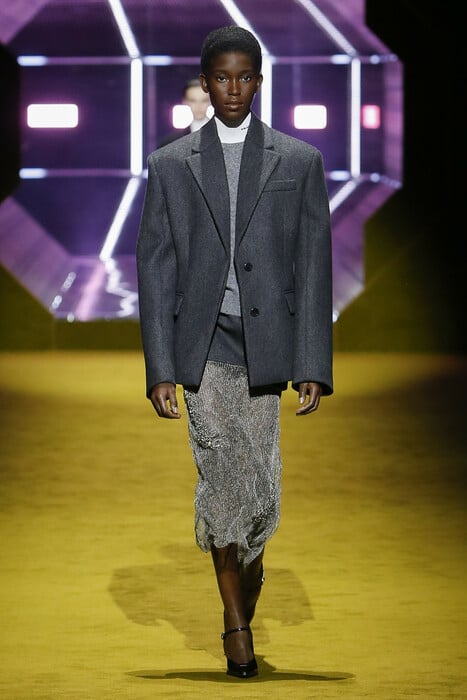 Η Miuccia Prada και ο Raf Simons ένωσαν αναπάντεχα τις δυνάμεις τους το 2020 εν μέσω πανδημίας κάτω από μια αβέβαιη περίοδο για τη διεθνή βιομηχανία της μόδας. Αυτή η απόφαση των διευθυνόντων συμβούλων του ιταλικού power house, των Patrizio Bertelli και Miuccia Prada, μπορούμε να πούμε ότι τους δικαίωσε καθώς οι πωλήσεις το 2021 αυξήθηκαν κατά 41%. Με τον αέρα ανανέωσης να φυσάει δυνατά, οι δυο καλλιτεχνικοί διευθυντές μας έδειξαν τις προτάσεις τους για τη σεζόν Φθινόπωρο/Χειμώνας 2022-2023 μέσα σε ένα κατάμεστο και ιδιαίτερα εντυπωσιακό set, ειδικά σχεδιασμένο από το αρχιτεκτονικό γραφείο ΑΜΟ.