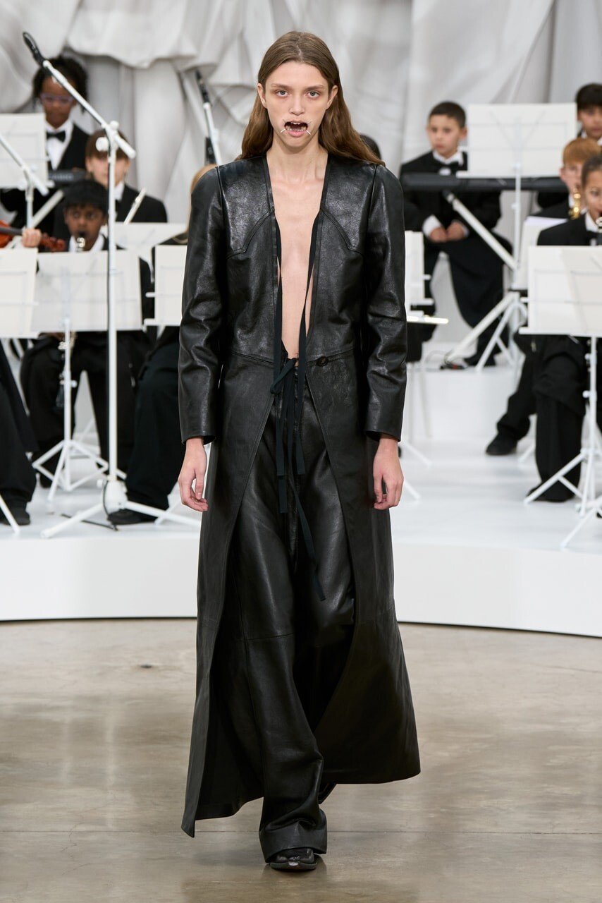 Στο Παρίσι το είδαμε στην πρώτη συλλογή του Glenn Martens για το Maison Margiela, μια μάλλον θαμπή δουλειά που το κοινό θα τη θυμάται (μόνο;) από τη Hannibal Lecter γκριμάτσα στα στόματα των μοντέλων, που φορούσαν ένα συρμάτινο μασελάκι. Αντί να παραπέμπει στο λογότυπο με τις τέσσερις βελονιές του οίκου (αυτή ήταν η πρόθεση) ή να τιμά την παράδοση του Martin Margiela να «εξαφανίζει» το πρόσωπο για να μιλήσει το ρούχο (όπως συνήθιζε να κάνει με μάσκες), αυτά τα αποτρόπαια παγωμένα χαμόγελα τραβούσαν το βλέμμα μακριά από τη μοδιστρική ευρηματικότητα του Martens.