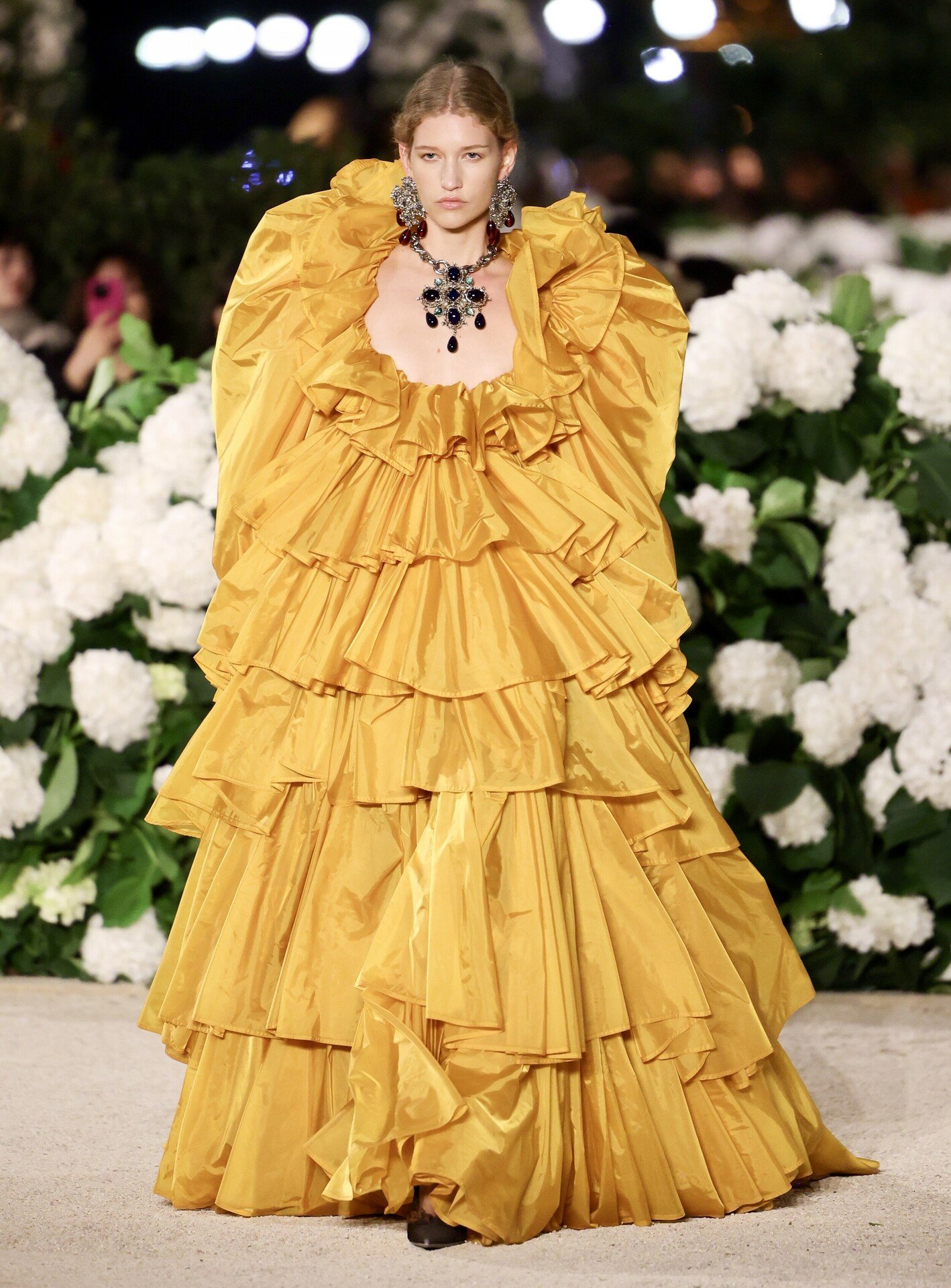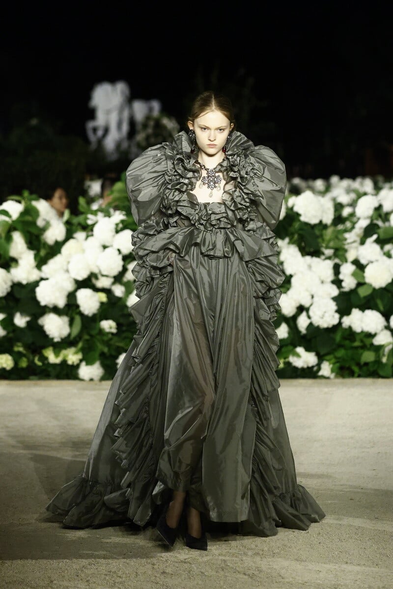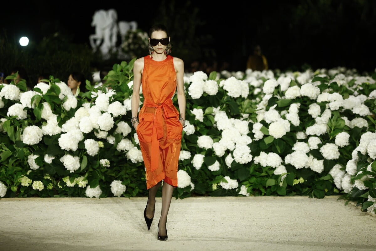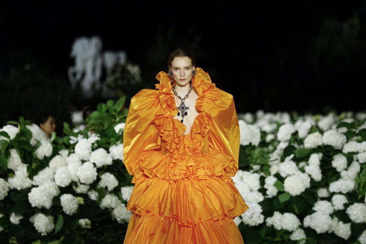 Σχεδιάζοντας το 30ό του σόου για τον οίκο Saint Laurent, ο Vaccarello, ανέγγιχτος θαρρείς από την ένταση των ημερών, τίμησε τον YSL περισσότερο από κάθε άλλη φορά, στις λεπτομέρειες αλλά και στην υπερβολή. Την αγαπημένη του ώρα, το σούρουπο, σε έναν οργιώδη κήπο (που σχημάτιζε το λογότυπο YSL, σχεδιασμένο το 1961 από τον περίφημο γραφίστα με το ψευδώνυμο Cassandre) στα πόδια του Πύργου του Άιφελ, μίλησε για την ουσία του πιο γαλλικού οίκου μόδας που πάντα υπήρξε η αναζήτηση μιας προκλητικής θηλυκότητας.