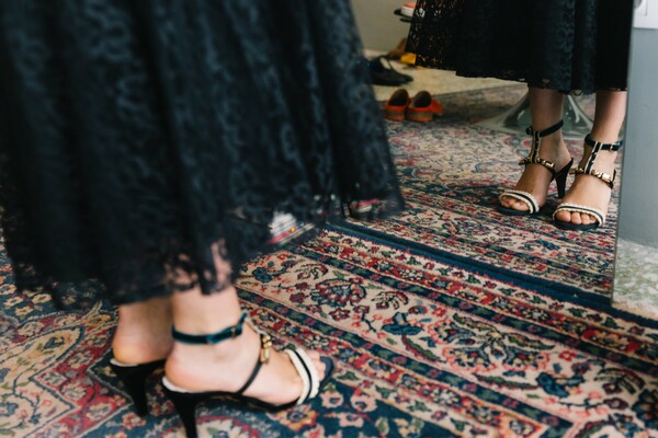 Λογής-λογής γόβες σε έντονα χρώματα και animal prints, desert boots, πέδιλα και πασουμάκια είναι τοποθετημένα στη σειρά, ενώ στον πίσω τοίχο βλέπει κανείς εργαλεία, καλαπόδια, μυστήρια τακούνια με αρχιτεκτονικές αναφορές, απαλά δέρματα και ένα κάρο πατρόν. Κάπου ψηλά υπάρχει και μια φωτεινή επιγραφή νέον που γράφει «Don't walk, dance», καλώντας σε να ξεκινήσεις να προβάρεις ό,τι σου γυαλίσει στο μάτι.