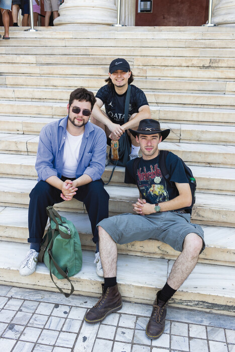 Είμαστε όλοι 23 και είναι η πρώτη μας μέρα στην Αθήνα πριν πάμε στα νησιά. Ο Nathan και ο Jeremy ήθελαν να δουν το άγαλμα του Δία. Γενικότερα η συλλογή ήταν τέλεια. Τα ρούχα μου είναι από ένα 2nd hand μαγαζί στο χωριό μου και κοστίζουν 20 ευρώ συνολικά. Ο Jeremy φοράει μπλούζα Paris Saint Germain (100 ευρώ), το Nike καπέλο μου κάνει 15 ευρώ και η βερμούδα μου κάπου 35. Τα ρούχα του Johan είναι θριφταρισμένα online. Το καπέλο είναι το αγαπημένο του item και κόστισε κάπου 35 ευρώ. Μετά από δω πάμε Ακρόπολη.