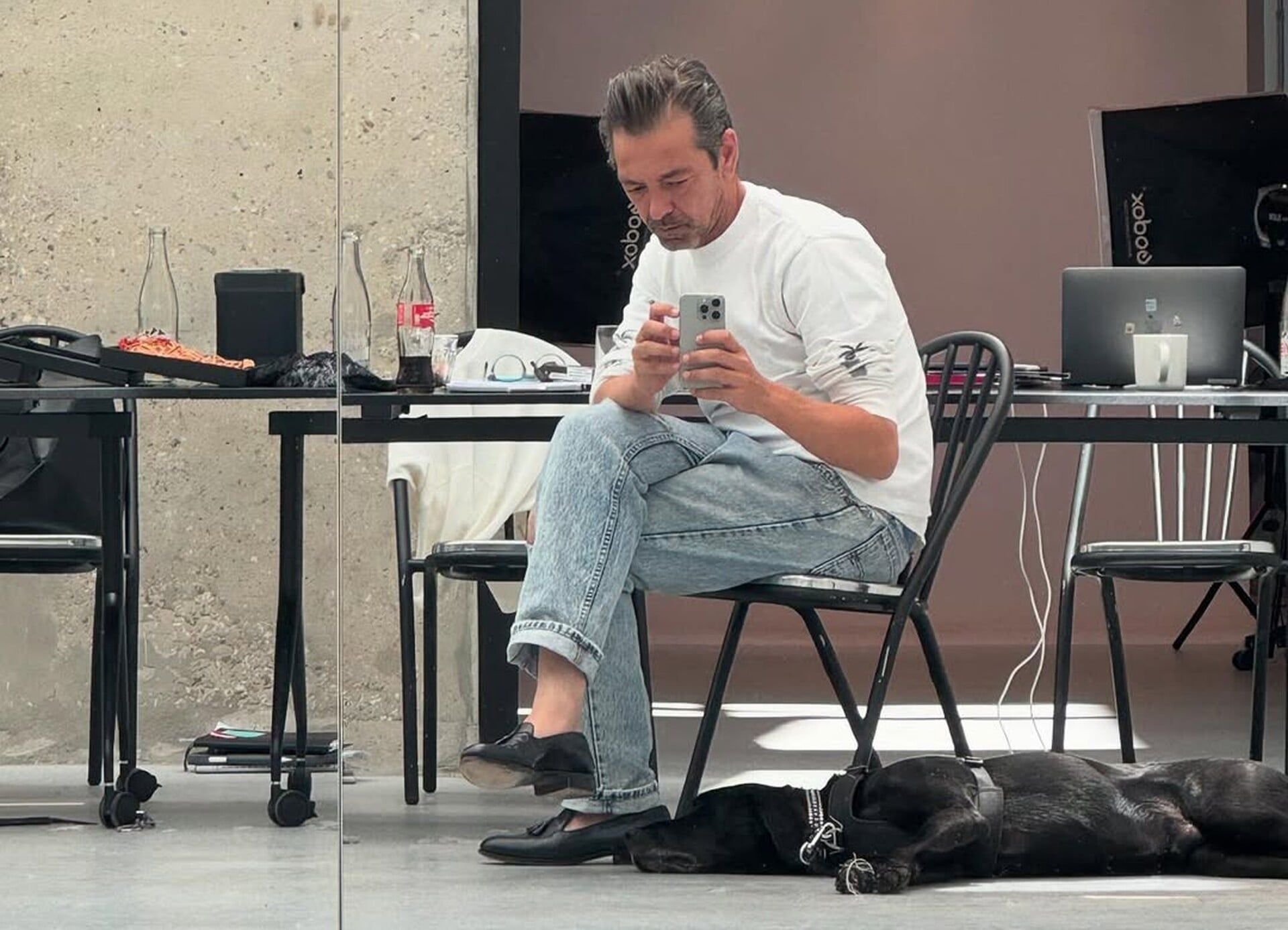 Η ίδια κοφτερή ματιά διαφαίνεται και στον χώρο και τον τρόπο που έχει επιλέξει να ζει τα τελευταία δέκα χρόνια, μακριά από το Παρίσι, στην αγαπημένη του Αμβέρσα, παρέα με το μαύρο του λαμπραντόρ.