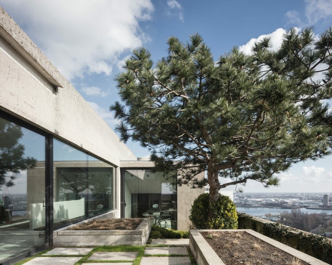 Επανασχεδιάστηκε ο κήπος, με ανθεκτικά θαμνώδη φυτά και τσιμεντένιους όγκους, το μόνο που διατηρήθηκε είναι μια τεράστια κουκουναριά. Φωτ.: Glenn Sestig Architects