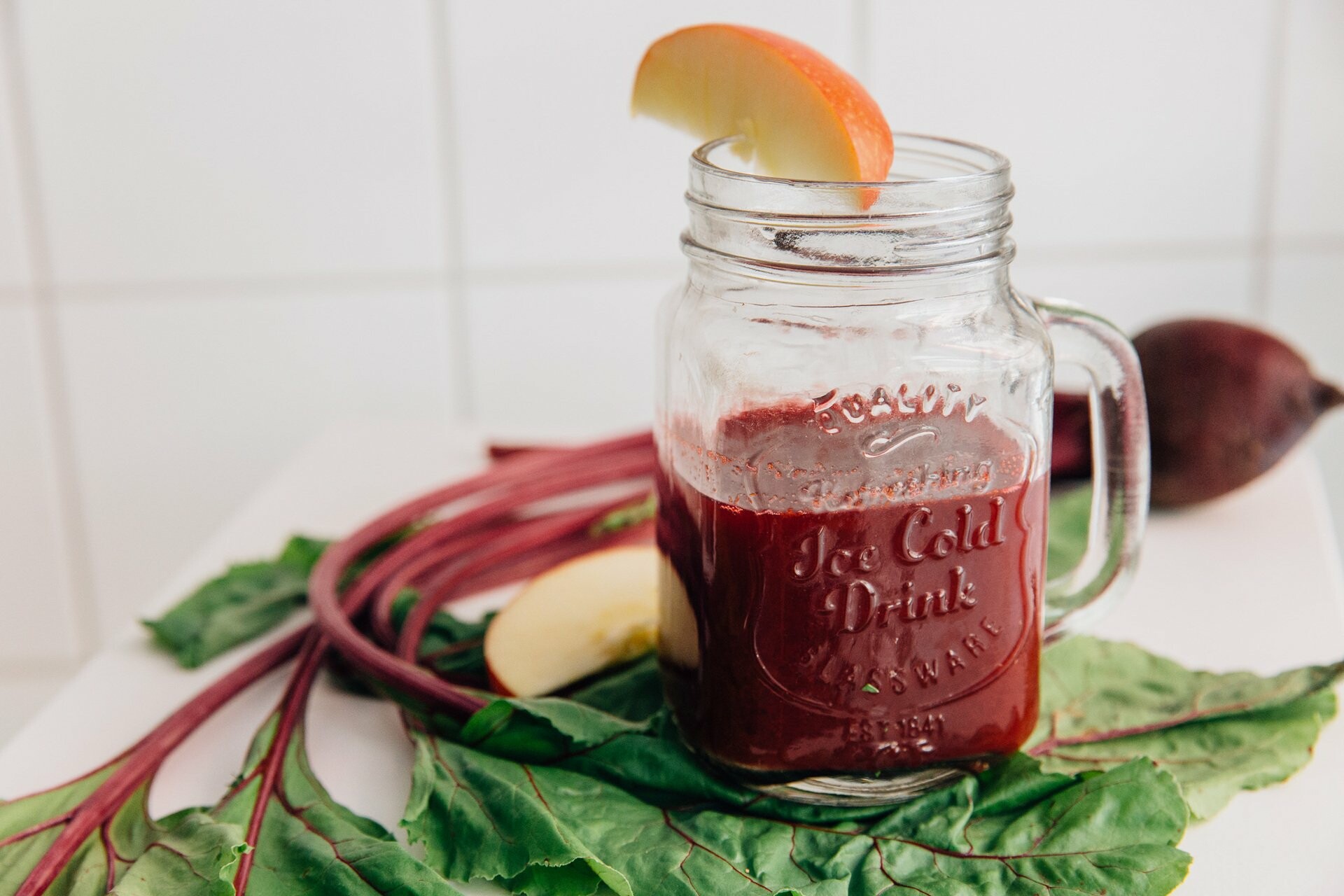 Περνάμε από τον αποχυμωτή το παντζάρι, το μήλο, τα καρότα και το τζίντζερ. Σερβίρουμε σε ποτήρι και προσθέτουμε τον χυμό μοσχολέμονου. Ανακατεύουμε και σερβίρουμε.